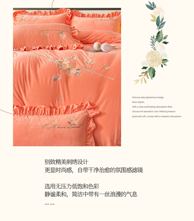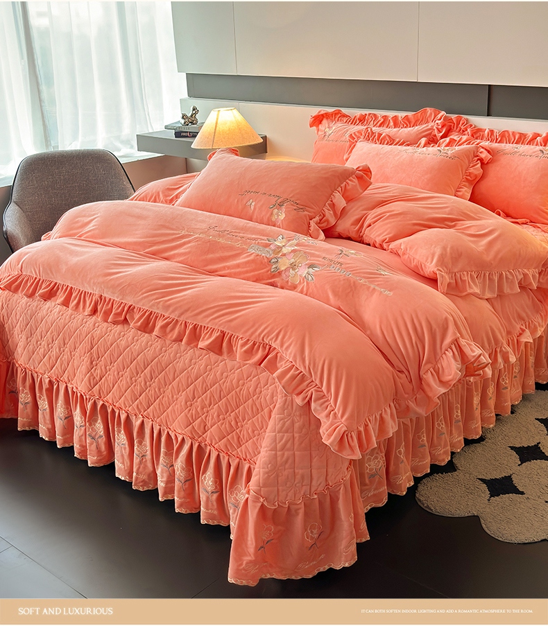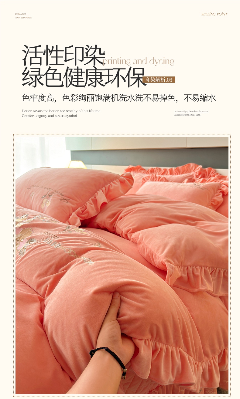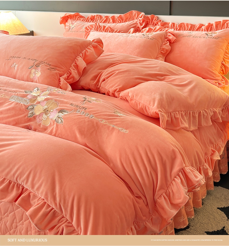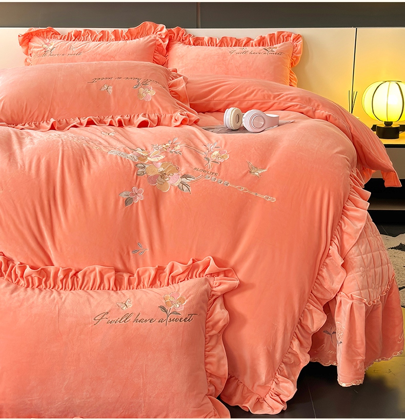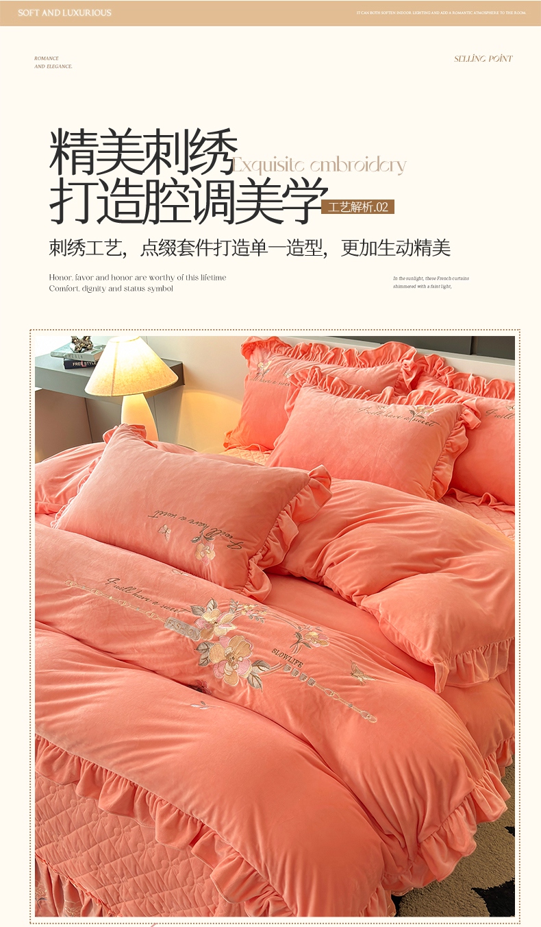当前位置: 91家纺网 > 商品网购 > 床品套件 > 四件套 > 宝宝绒四件套 > 2024新品A类依恋宝宝绒韩版四件套 柔粉玉