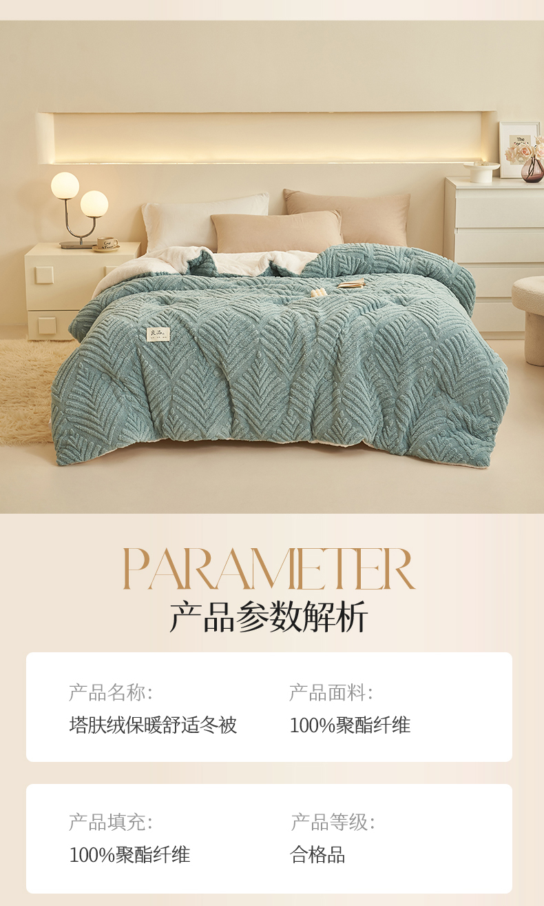• 91家纺网 家纺一手货源 找家纺 2024新品塔肤绒保暖舒适冬被子被芯 枫叶-浅灰蓝