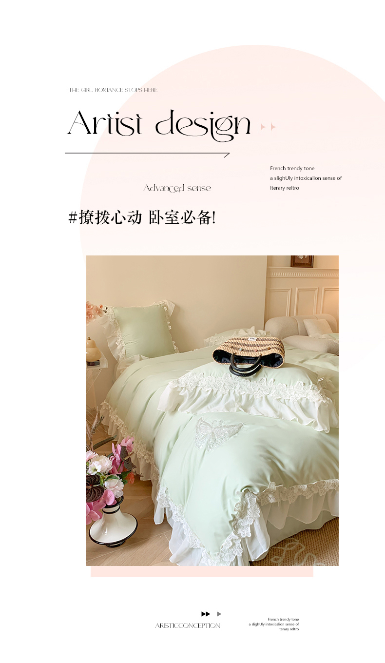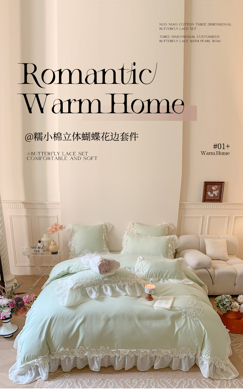 商品名称:吾欢心 2025新款糯小棉立体蝴蝶花边四件套-蝶恋花系列 蝶恋花绿