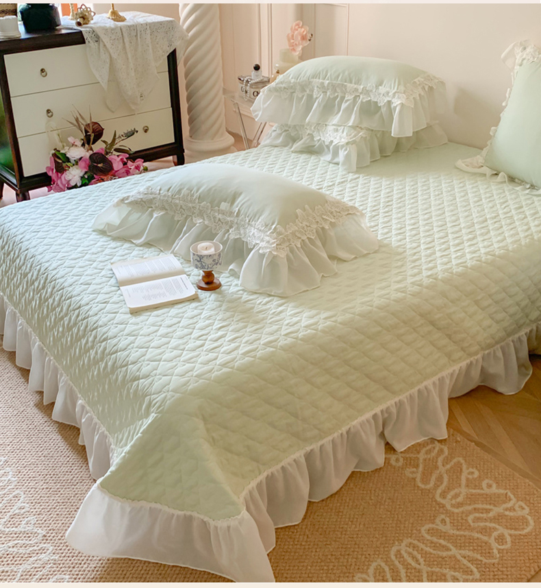 (总)吾欢心 2025新款公主风雪纺边四季通用夹棉床盖,床盖白,床盖粉,床盖黄,床盖咖,床盖绿,床盖抹茶绿,床盖紫