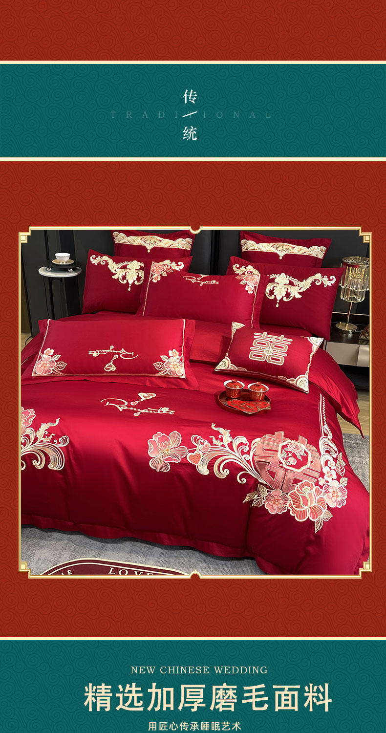 当前位置: 91家纺网 > 商品网购 > 床品套件 > 四件套 > 婚庆四件套 > 用心 2024新款亲肤加厚磨毛新中式婚庆四件套多件套 花语