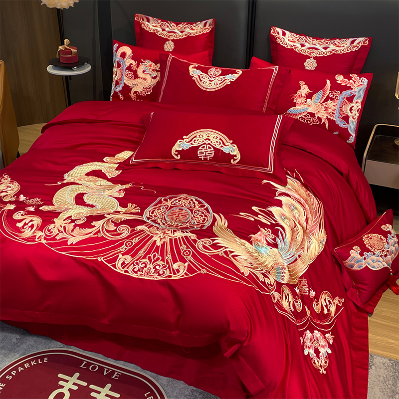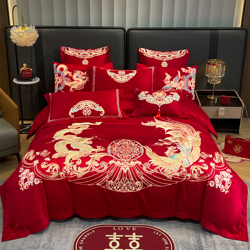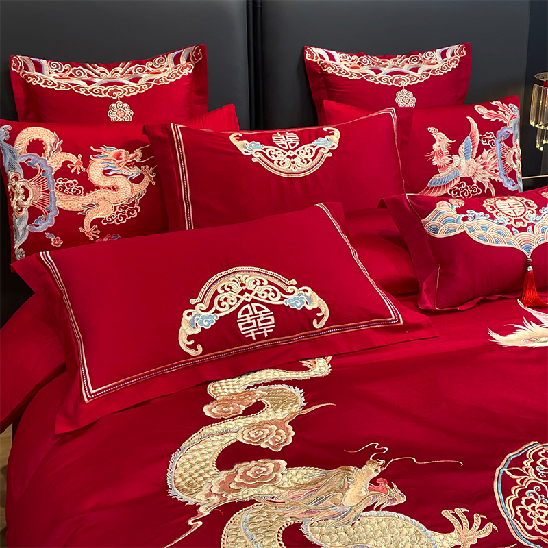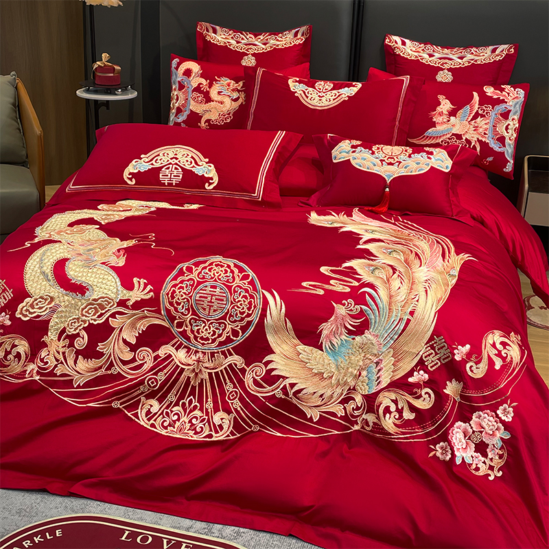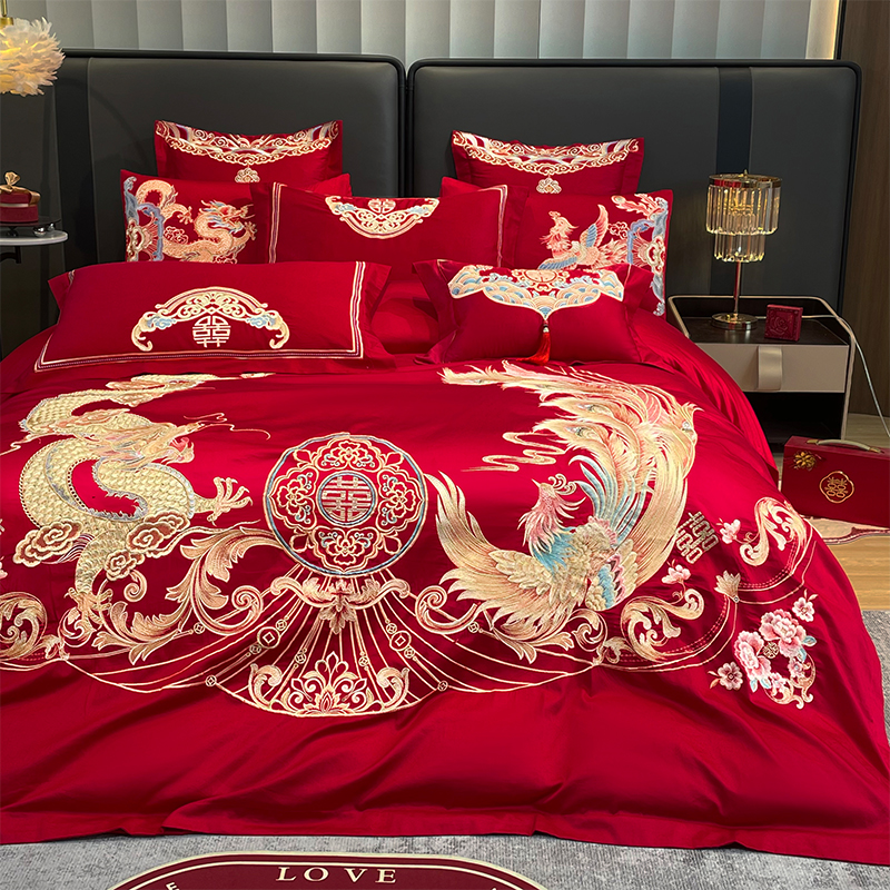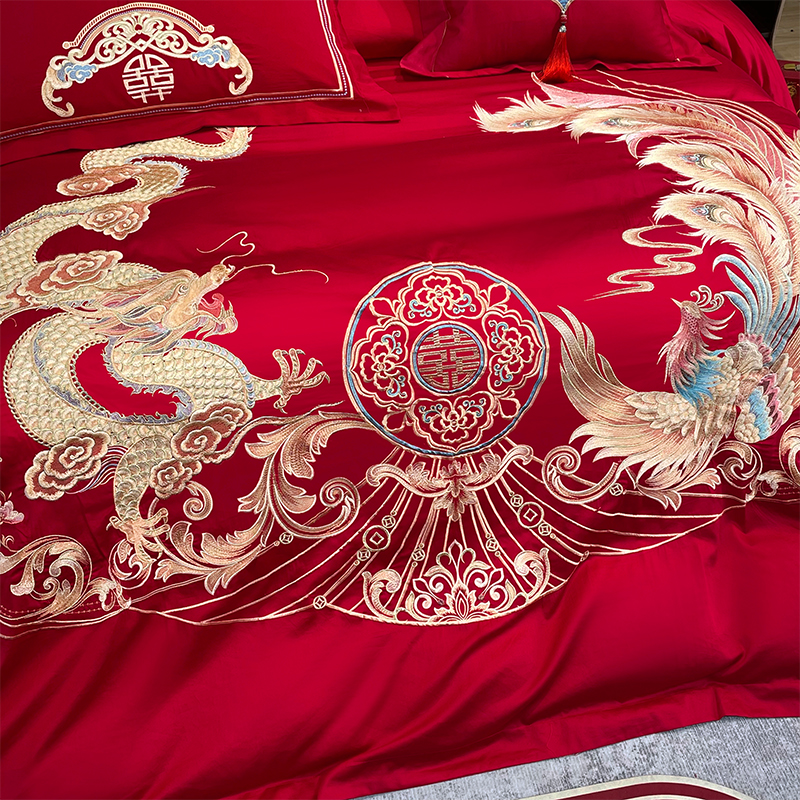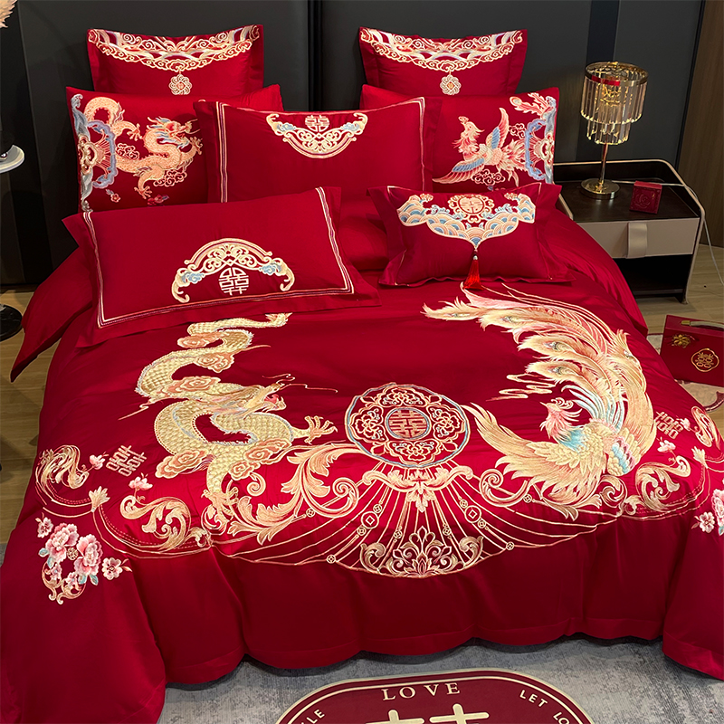 当前位置: 91家纺网 > 商品网购 > 床品套件 > 四件套 > 婚庆四件套 > 用心 2024年新款双面磨毛绣花婚庆四件套 龙鸣凤悦