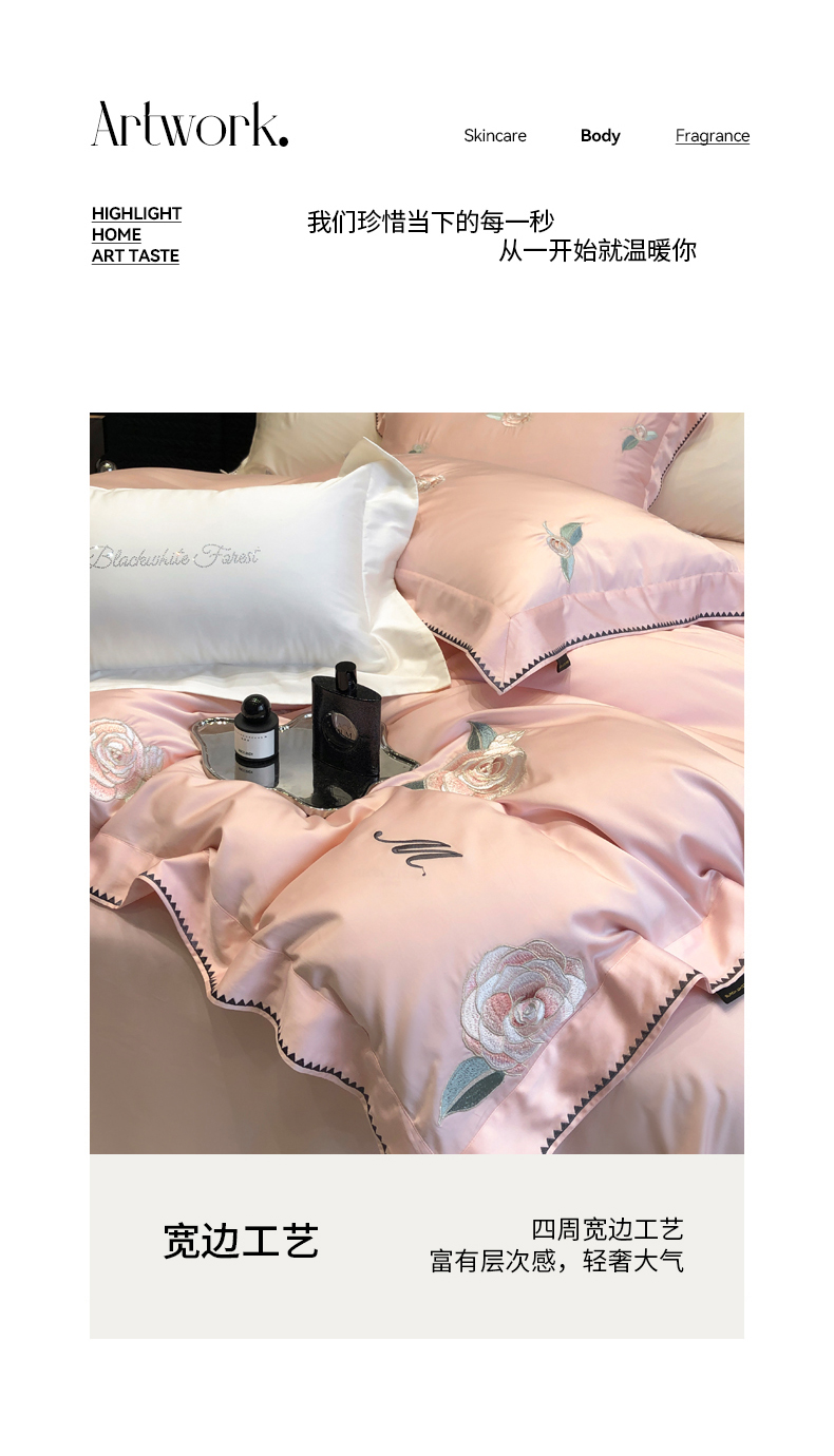黑白森林 2024年春夏上新50x50s高支天丝棉四件套-莉亚公主 莉亚公主-柔粉