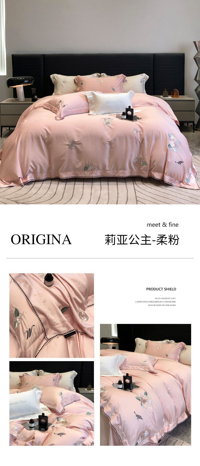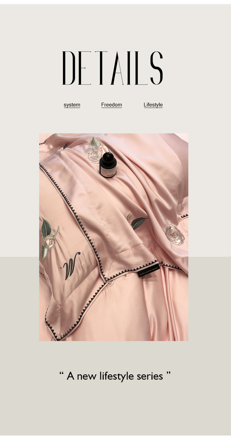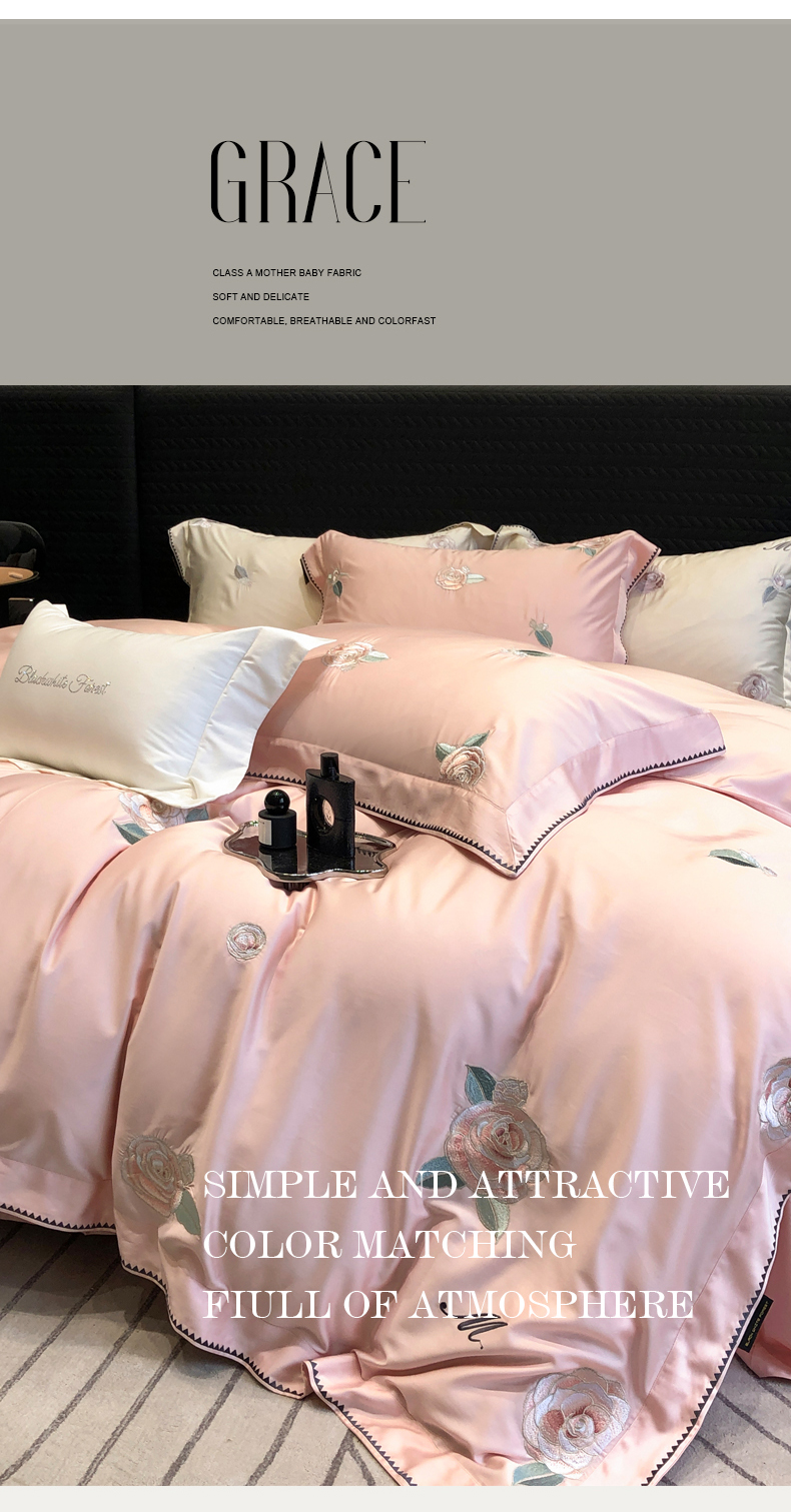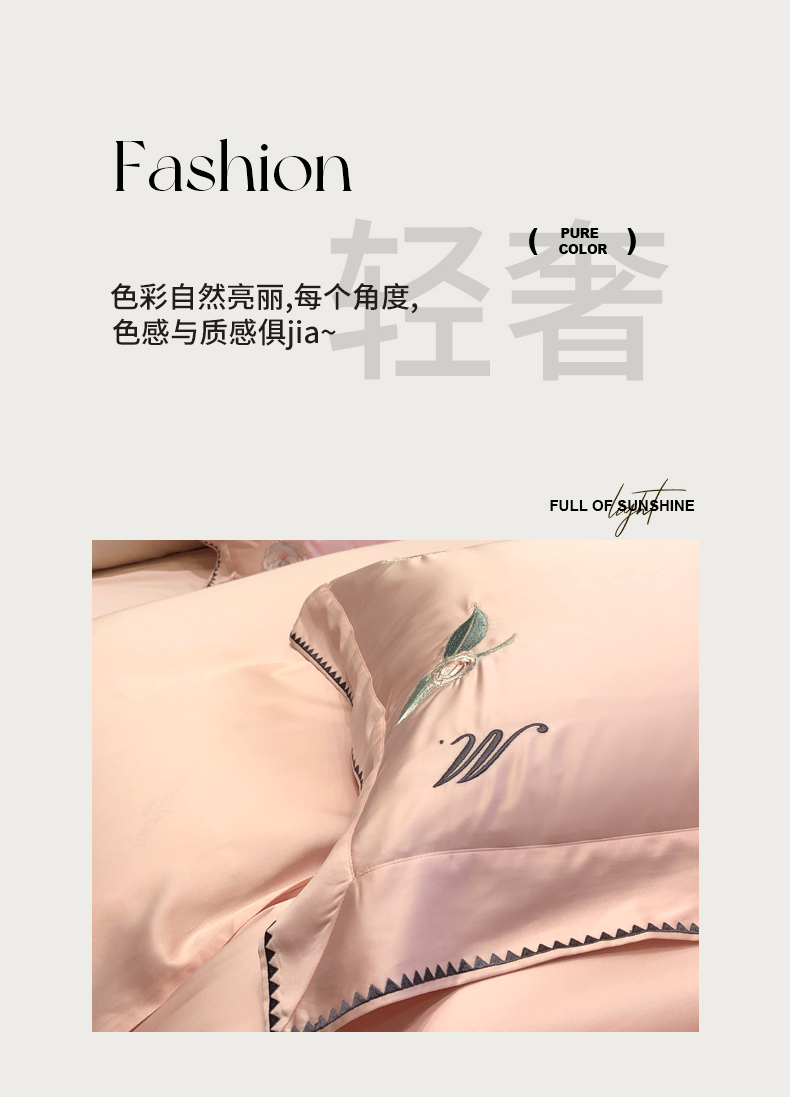 商品名称:黑白森林 2024年春夏上新50x50s高支天丝棉四件套-莉亚公主 莉亚公主-柔粉