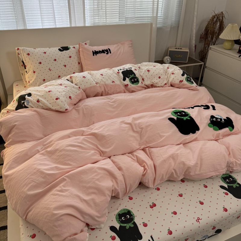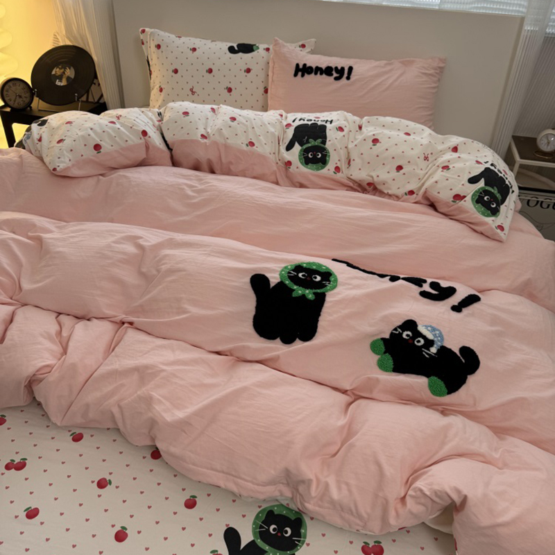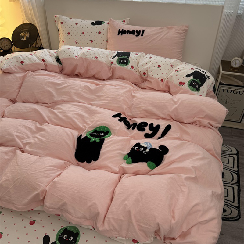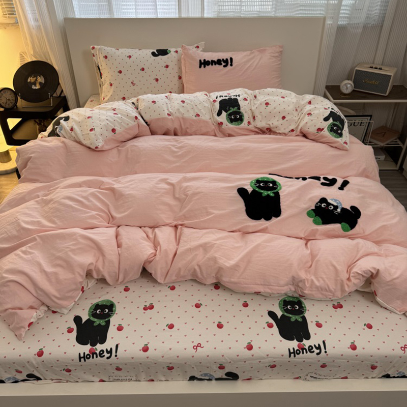 当前位置: 91家纺网 > 商品网购 > 床品套件 > 四件套 > 毛巾绣四件套 > 奈颜 2024新款高克重印花毛巾绣爆款四件套-实拍图第二组 爱心猫-柔粉