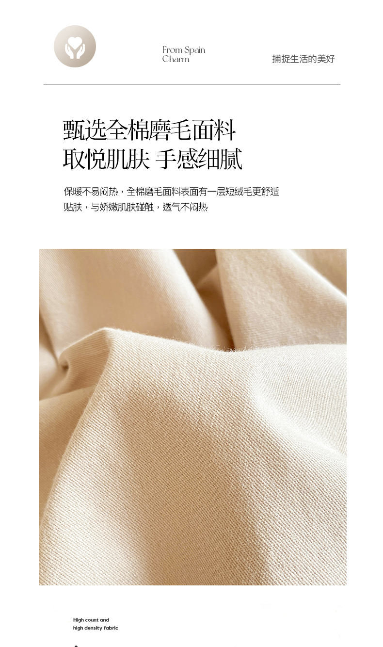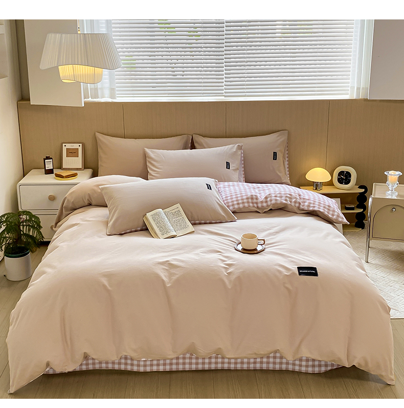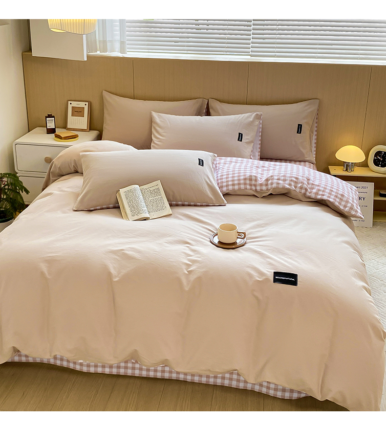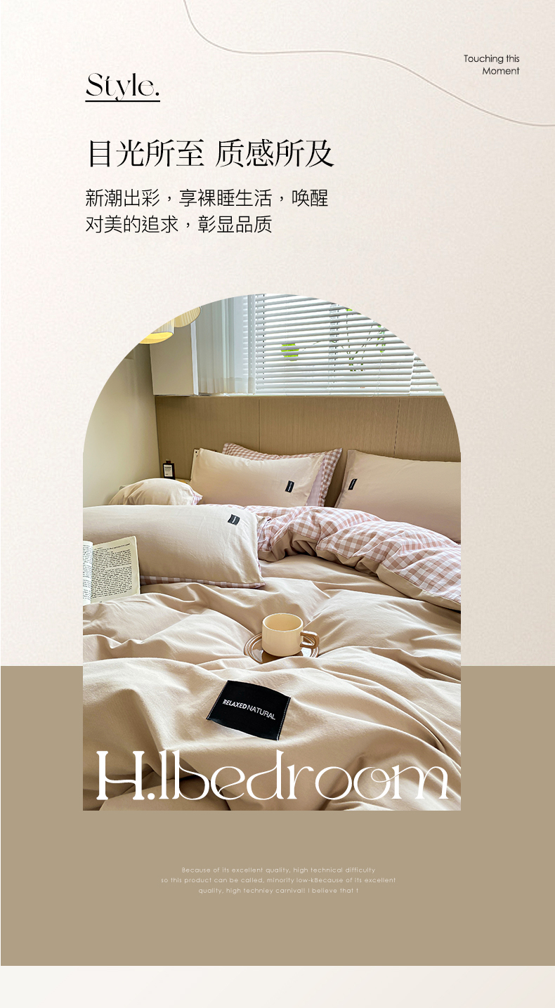 卧趣家纺 2024秋冬新品全棉磨毛贴标款四件套简约无印风系列风格二 简兮-咖