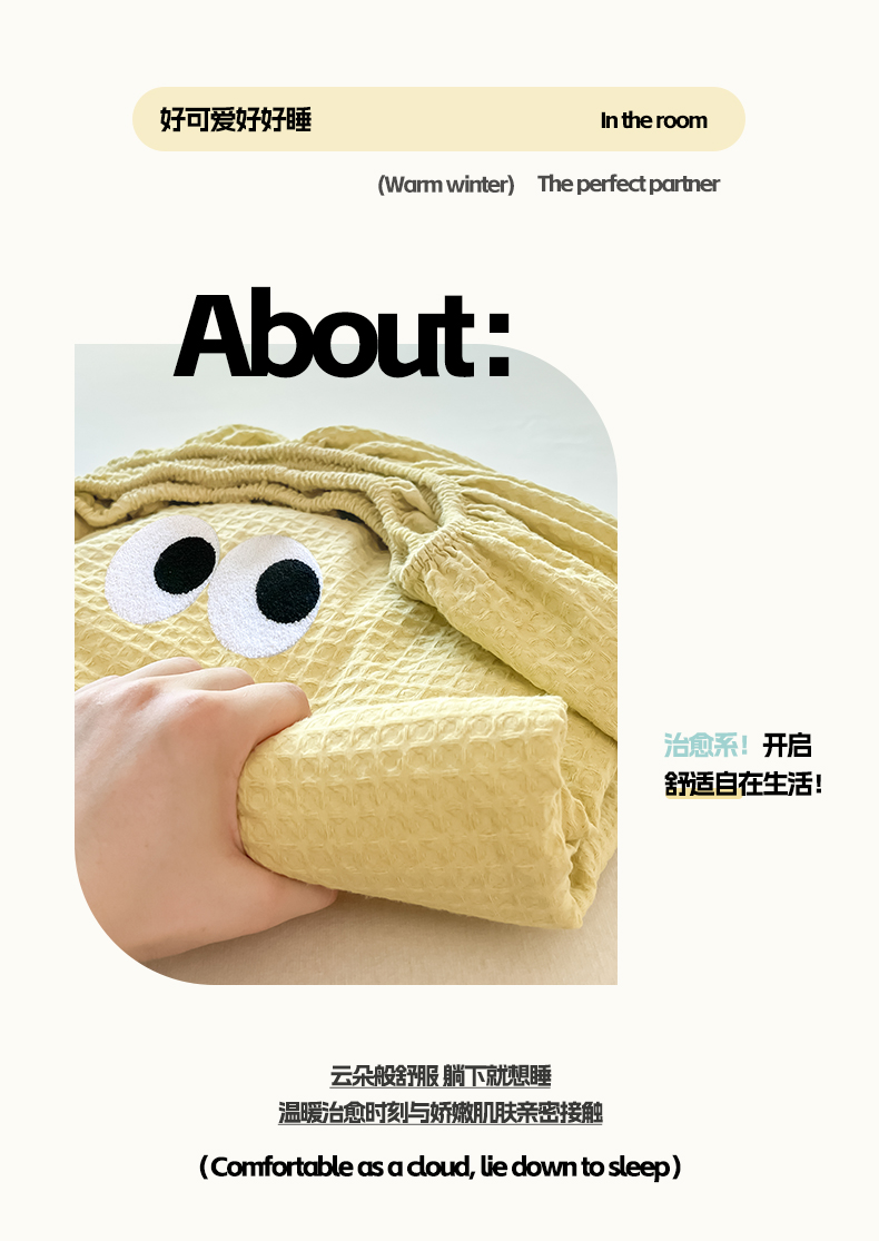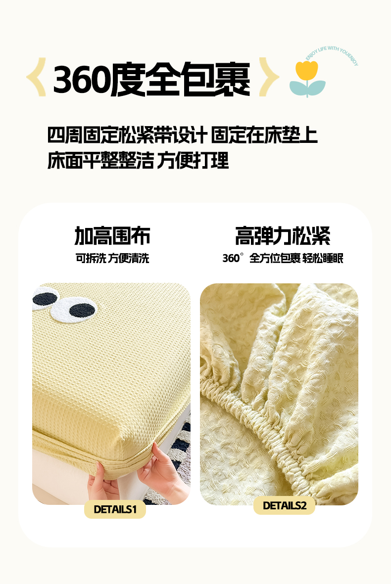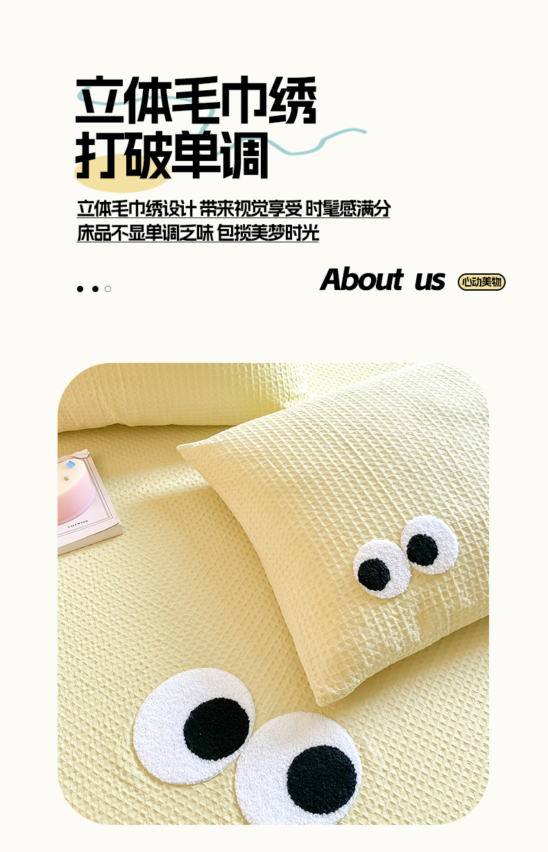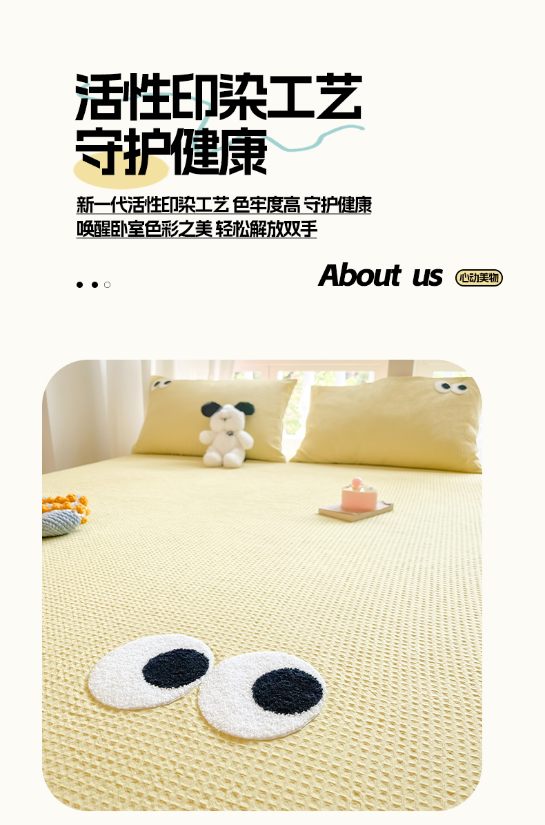 商品名称:居眠 2024新款全棉华夫格毛巾绣床笠 呆呆大眼-黄