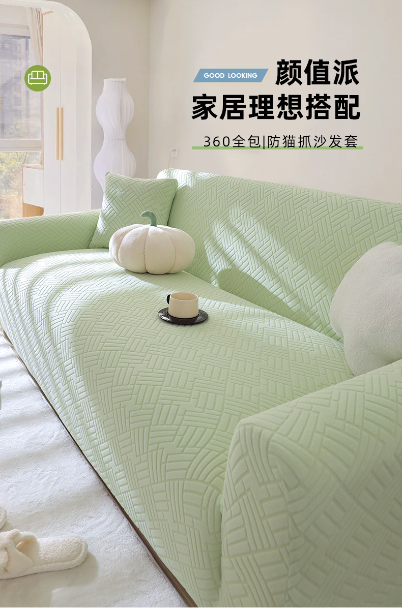 沐沐家纺 2026新款简约舒适清灵沙发套 柠檬绿