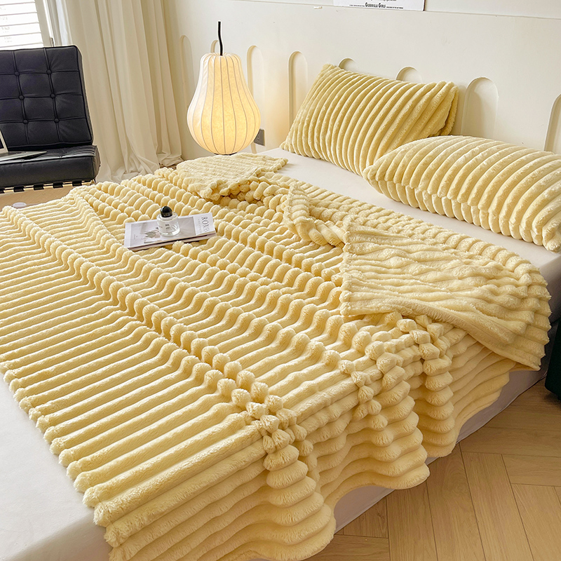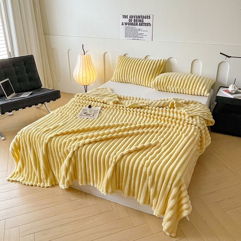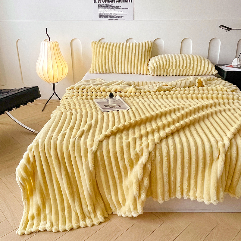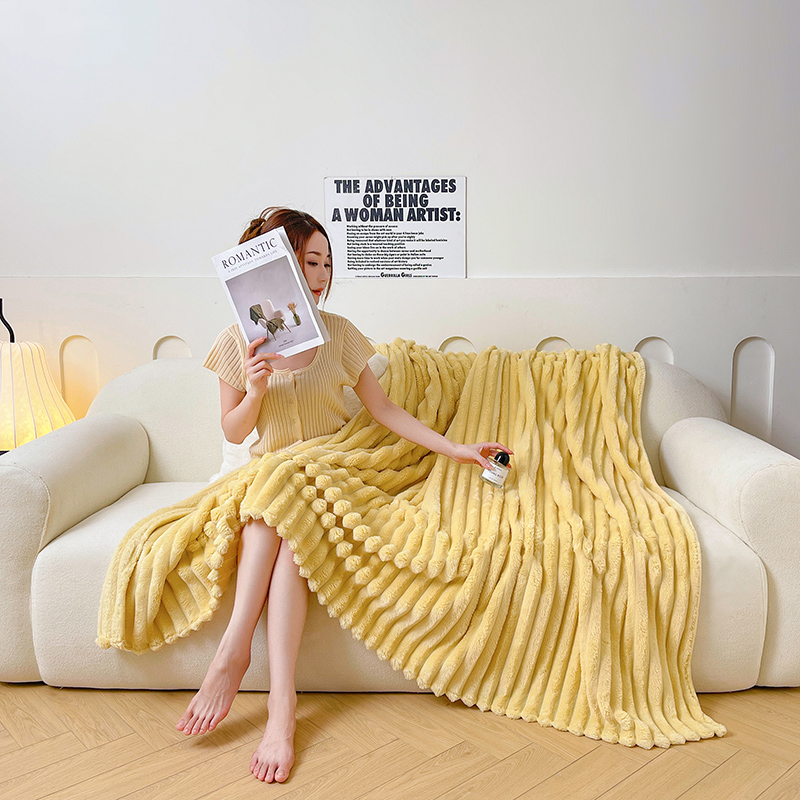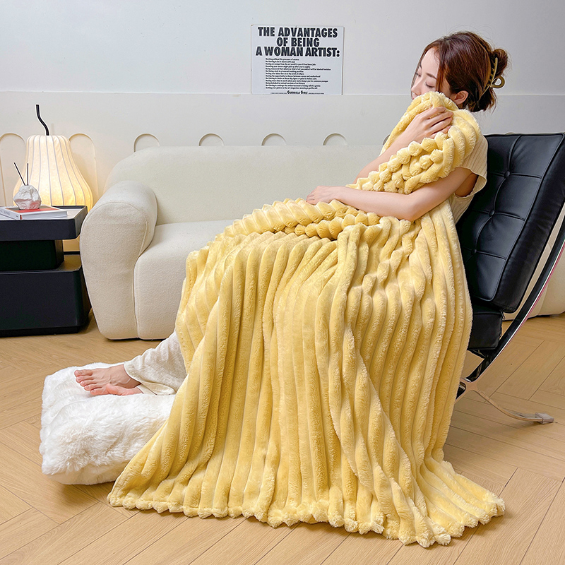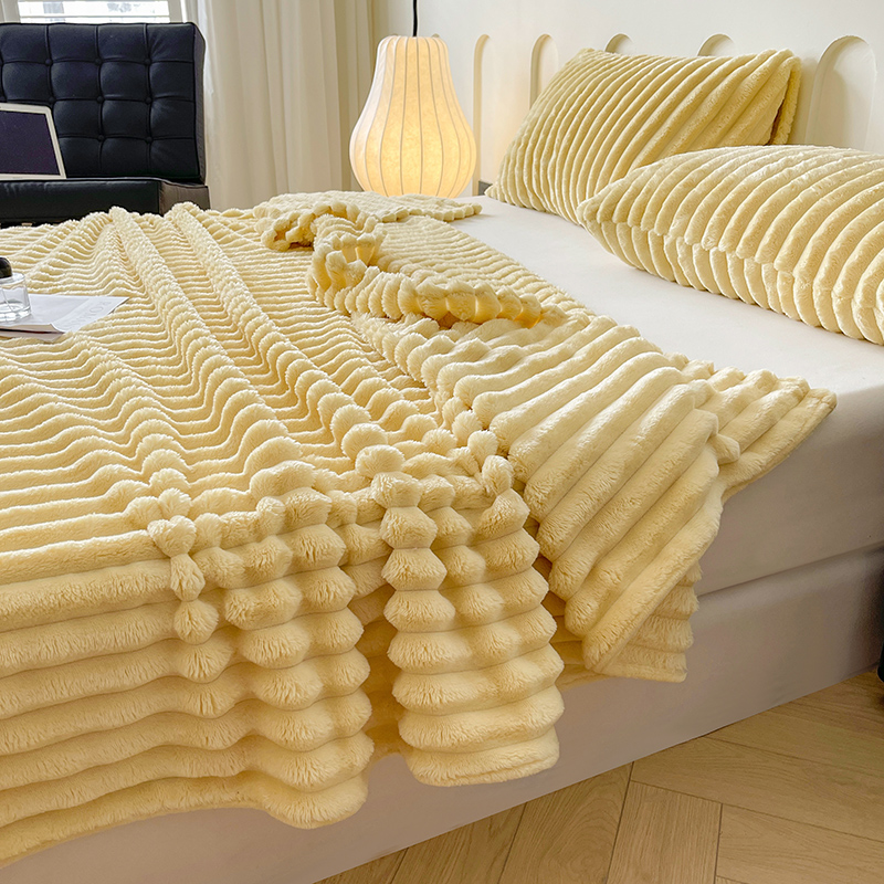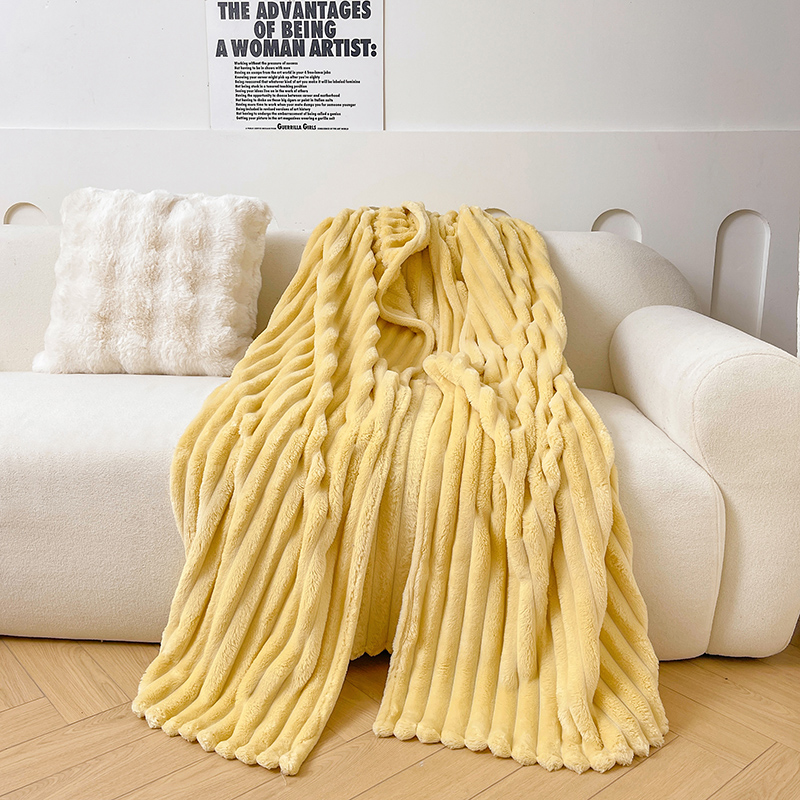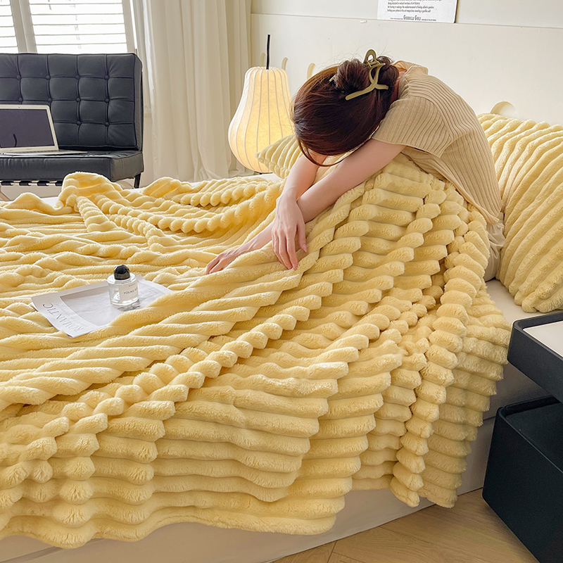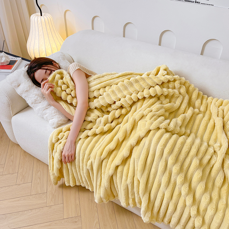寐居家纺 2024新款泡泡兔毛绒午睡毯毛毯盖毯 麦芽黄