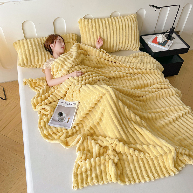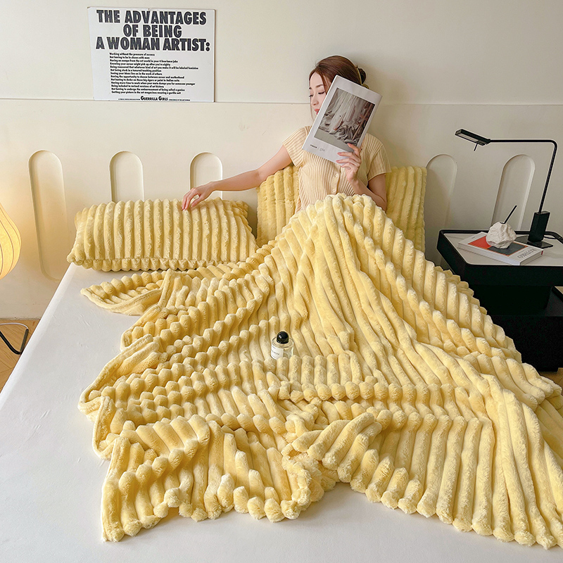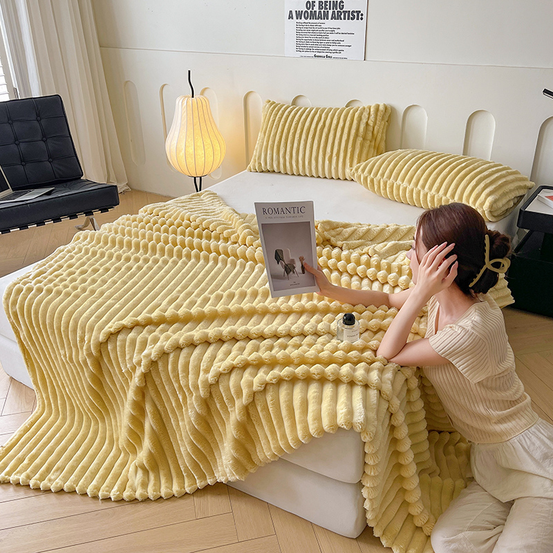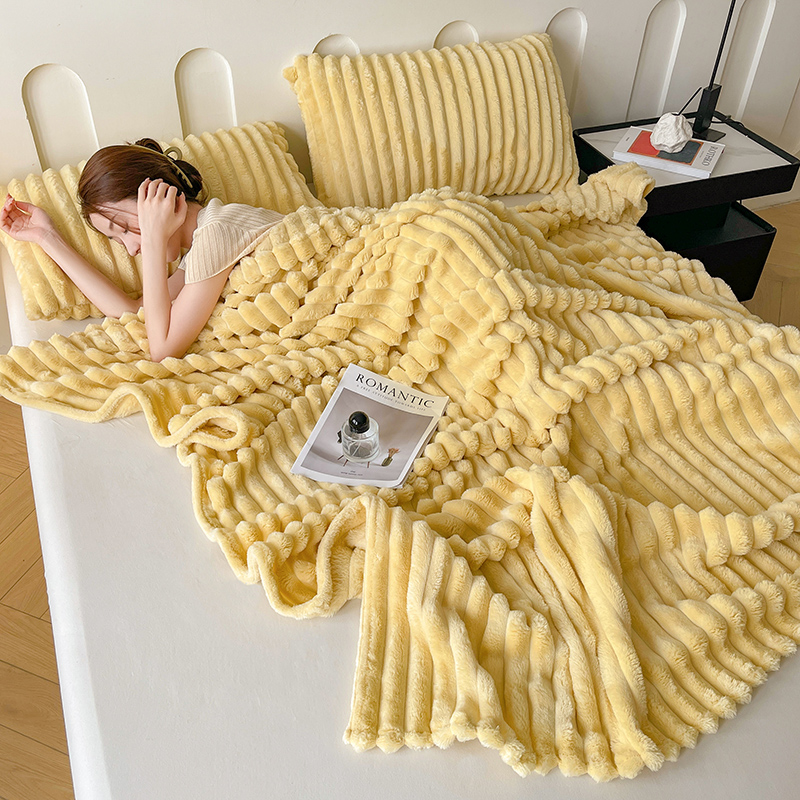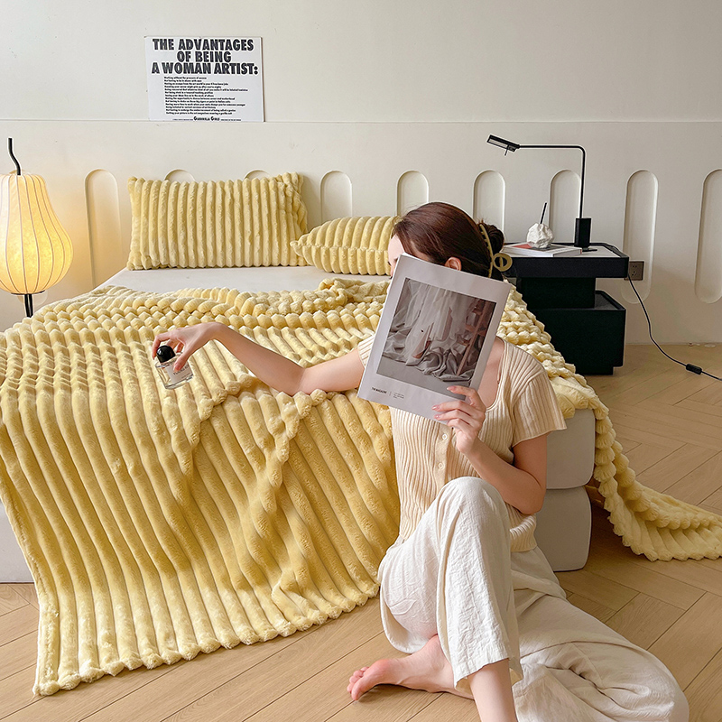 商品名称:寐居家纺 2024新款泡泡兔毛绒午睡毯毛毯盖毯 麦芽黄