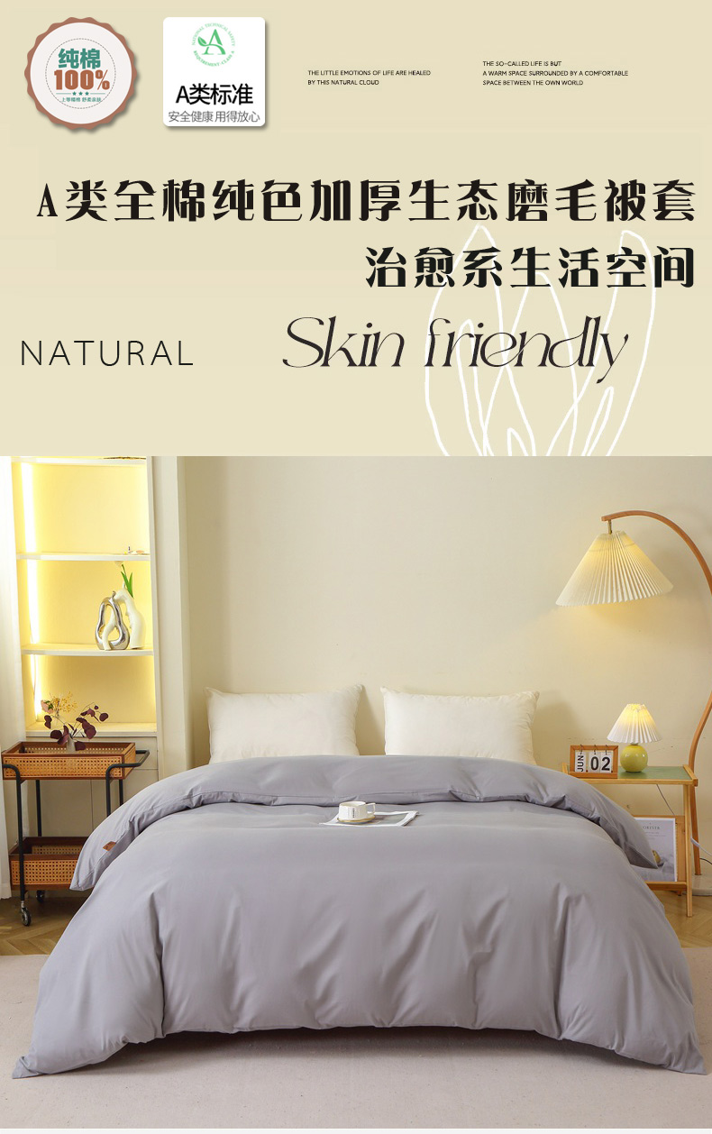 商品名称:晶缦家纺 2024新款全棉13376纯色喷气全棉磨毛单品被套 暖芸馨-浅青灰