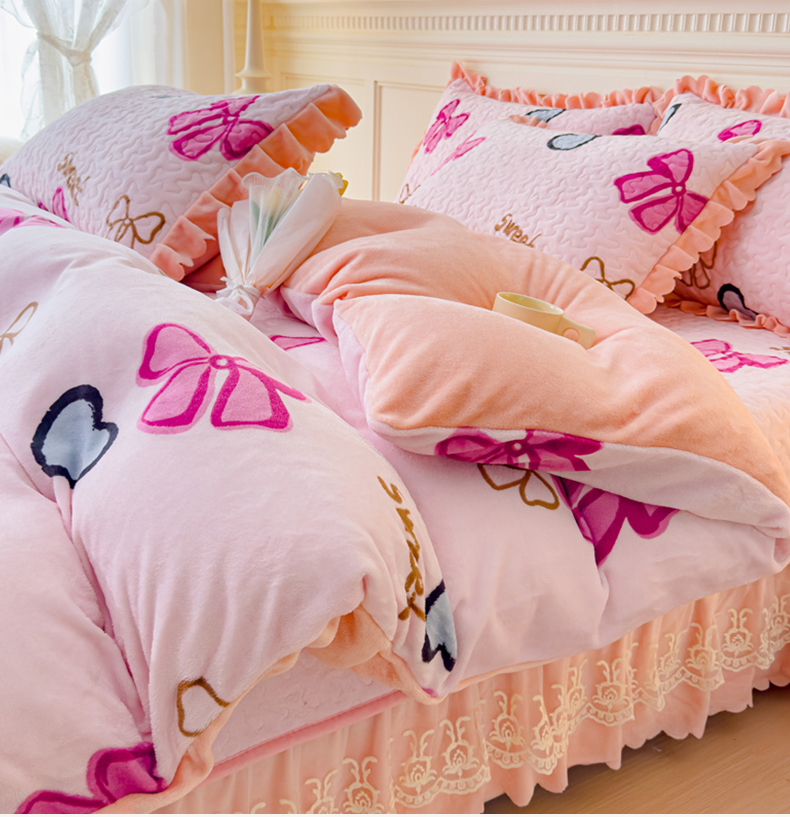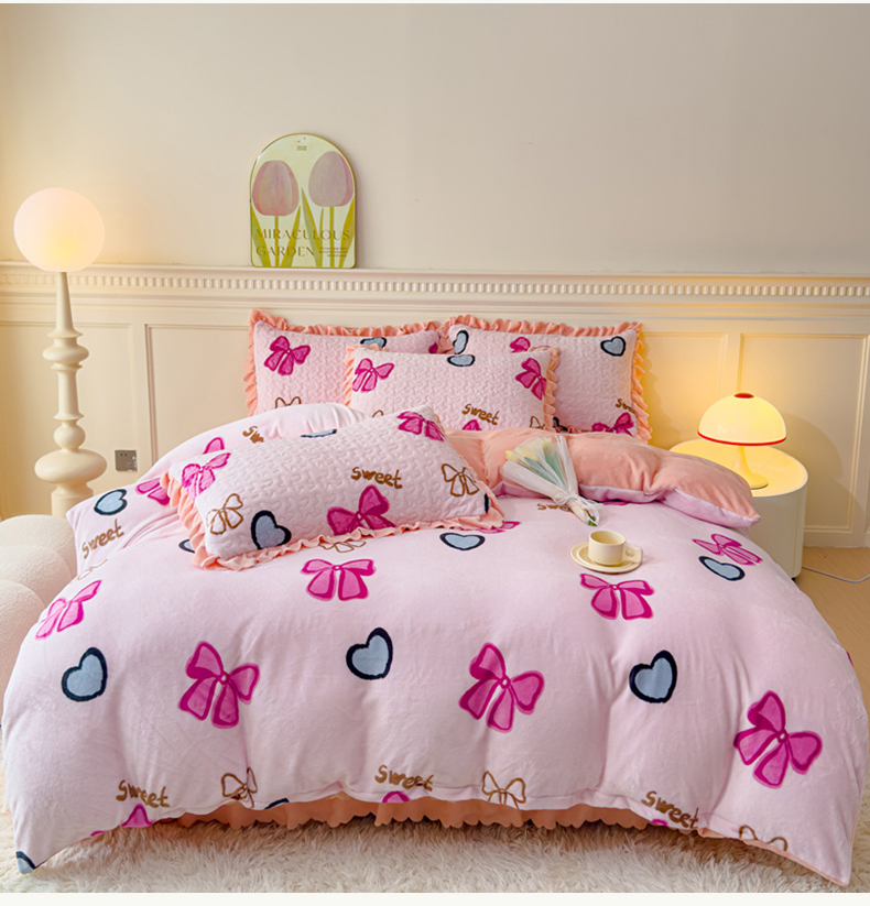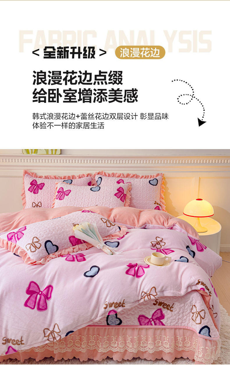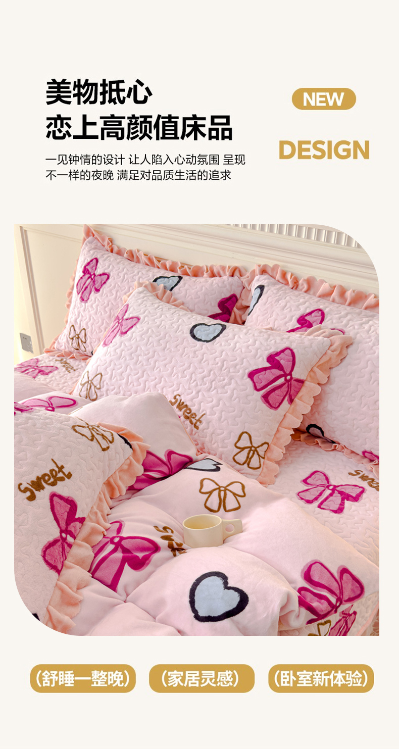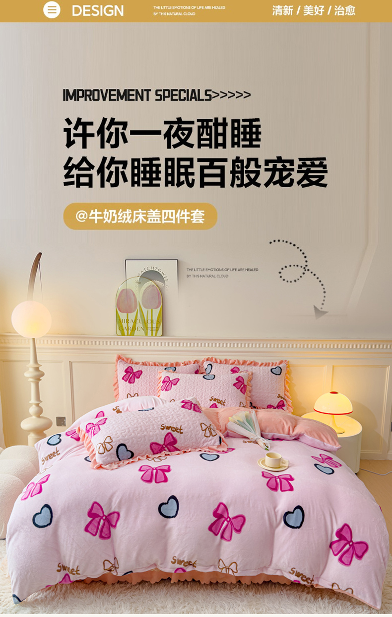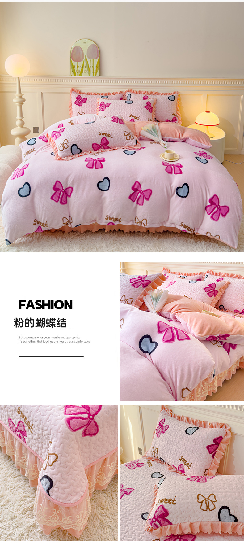 当前位置: 91家纺网 > 商品网购 > 床品套件 > 四件套 > 牛奶绒四件套 > 铠畅 2025新款加厚牛奶绒床盖四件套 粉的蝴蝶结