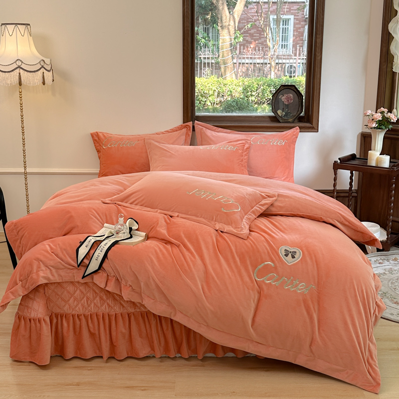 尚美 2024新款床盖款工艺设计四件套-依连娜 爱马橙