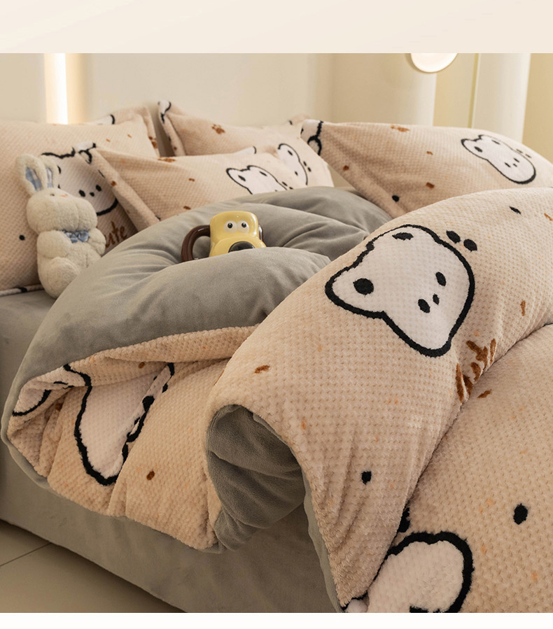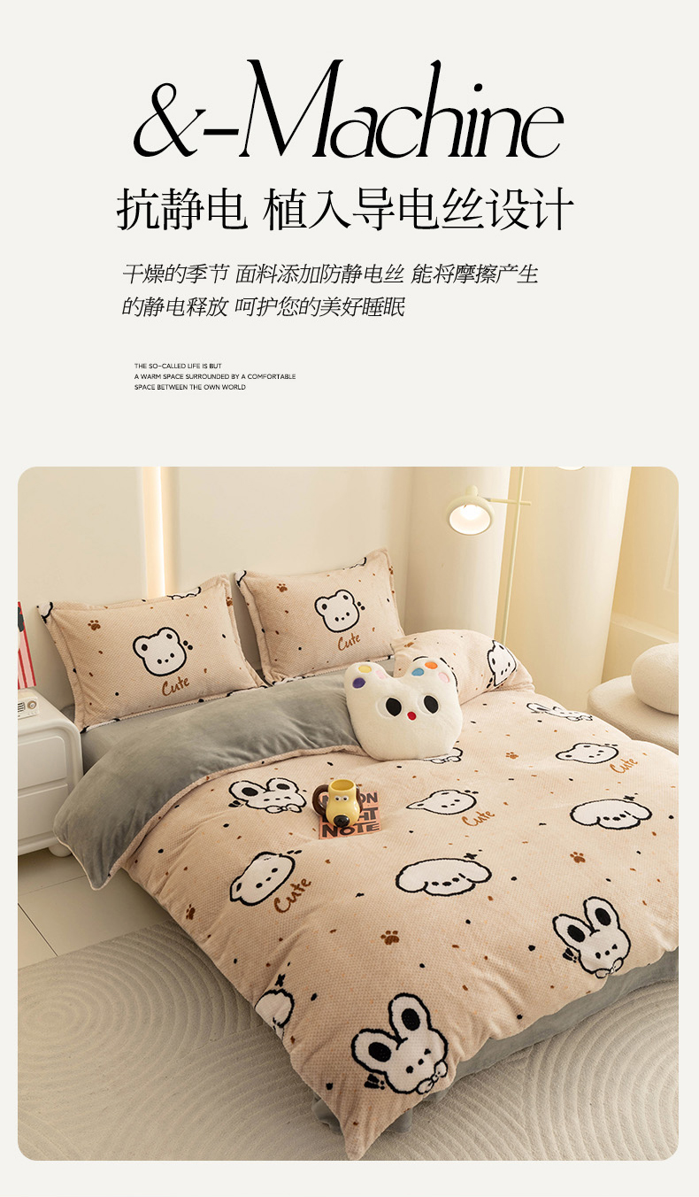 当前位置: 91家纺网 > 商品网购 > 床品套件 > 四件套 > 牛奶绒四件套 > 2024新款立体菠萝格印花保暖牛奶绒系列四件套 米粒乐园