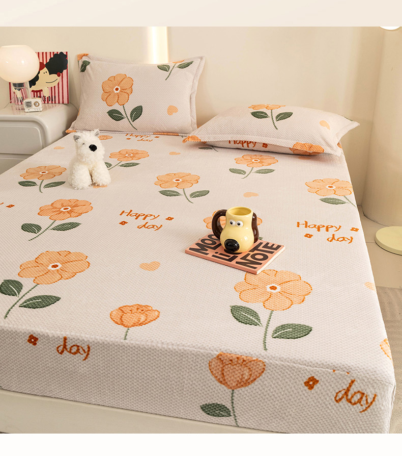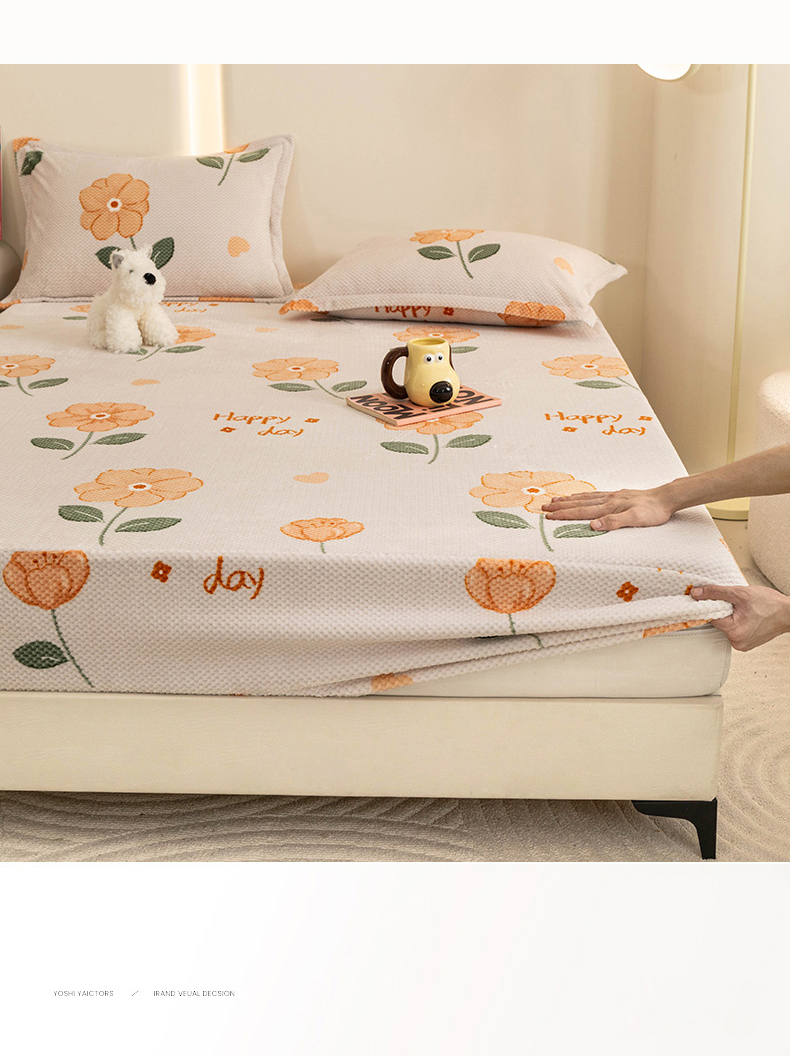 2024新款立体菠萝格印花保暖牛奶绒系列单床笠 黄小花