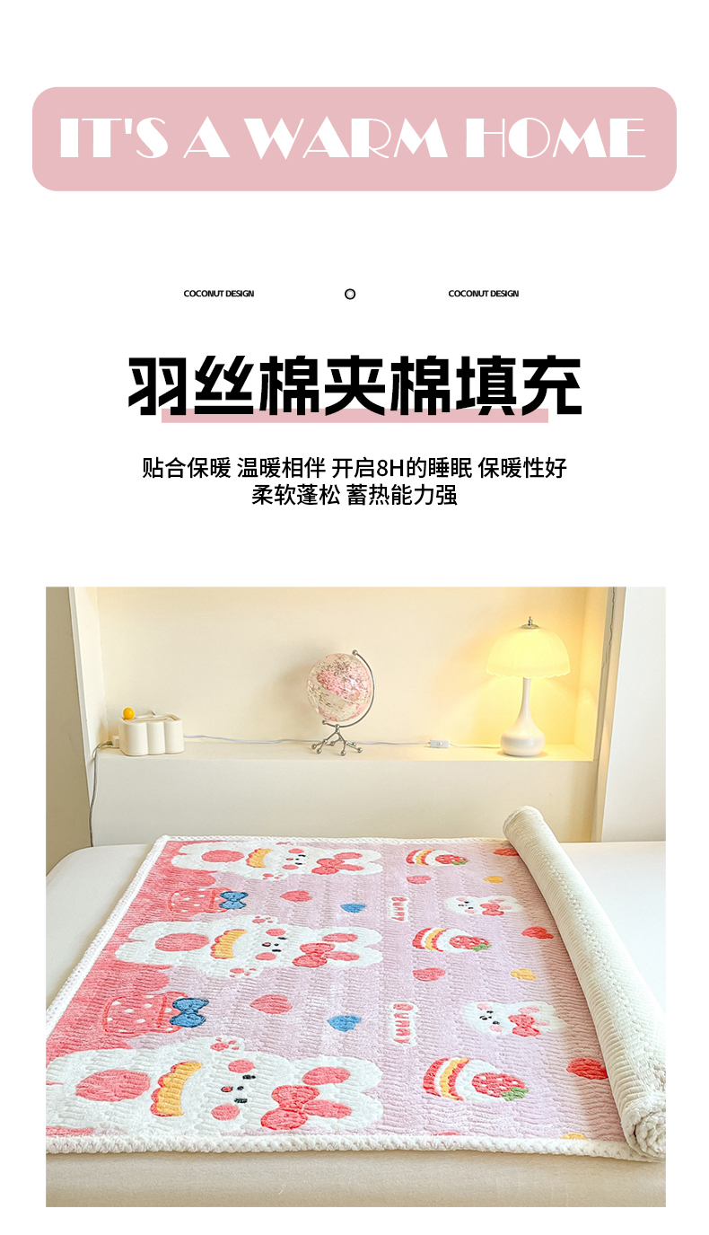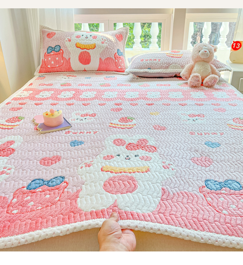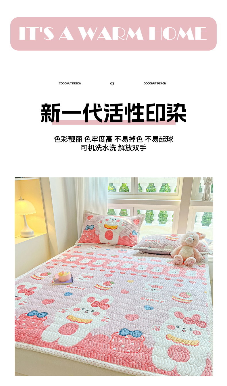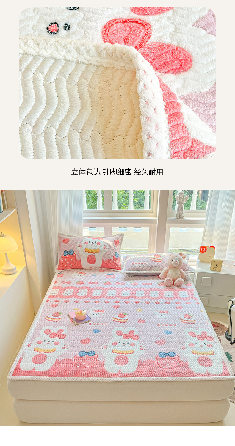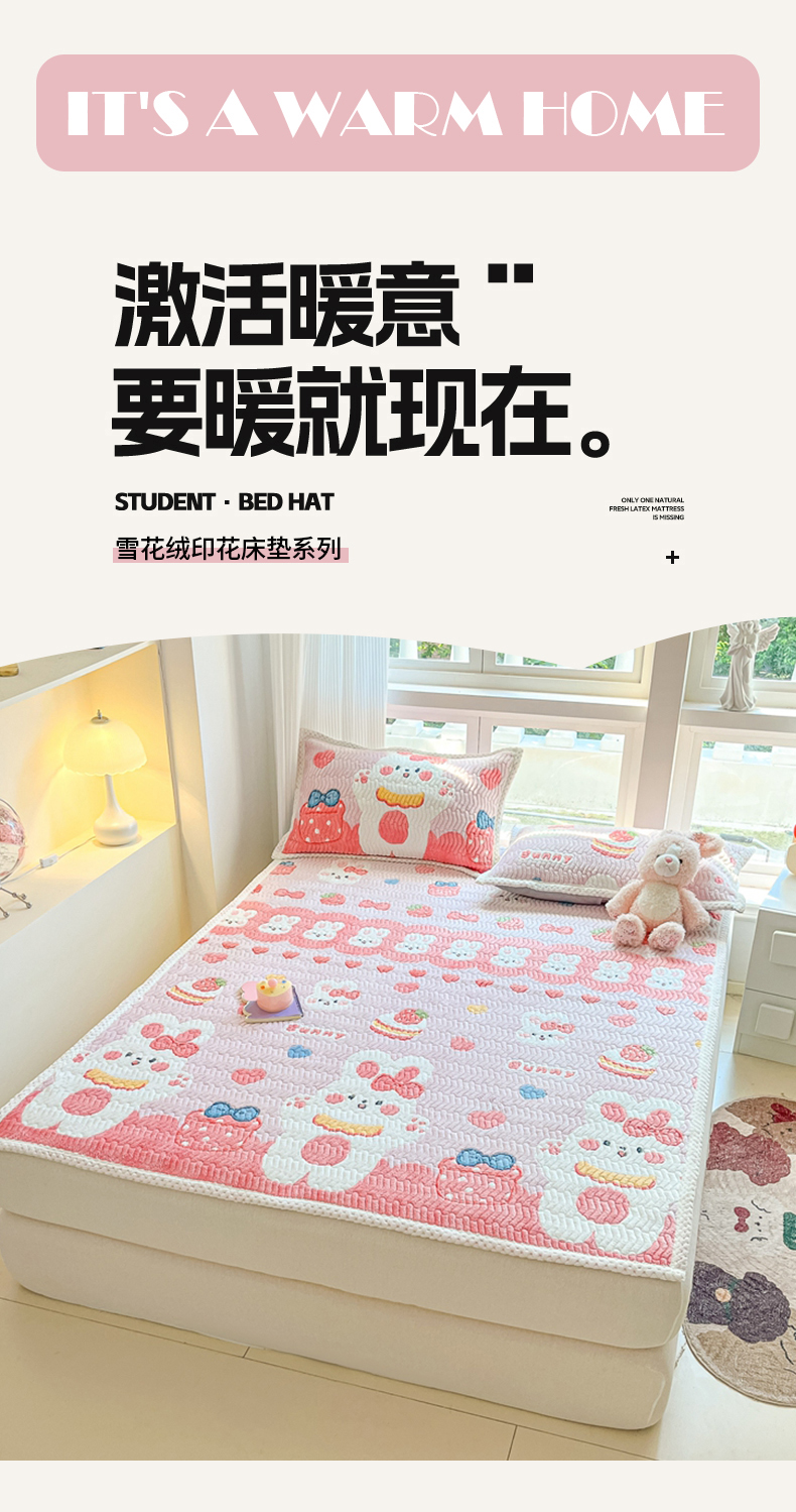 当前位置: 91家纺网 > 商品网购 > 床垫/床褥 > 普通床垫 > 川悦生活 2024新款A类印花雪花绒床垫加厚绒保暖床护垫 床垫幸福甜兔