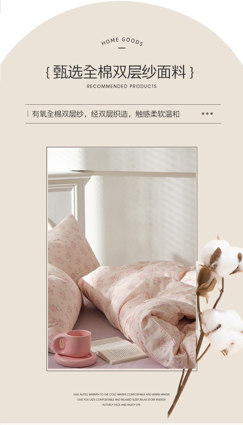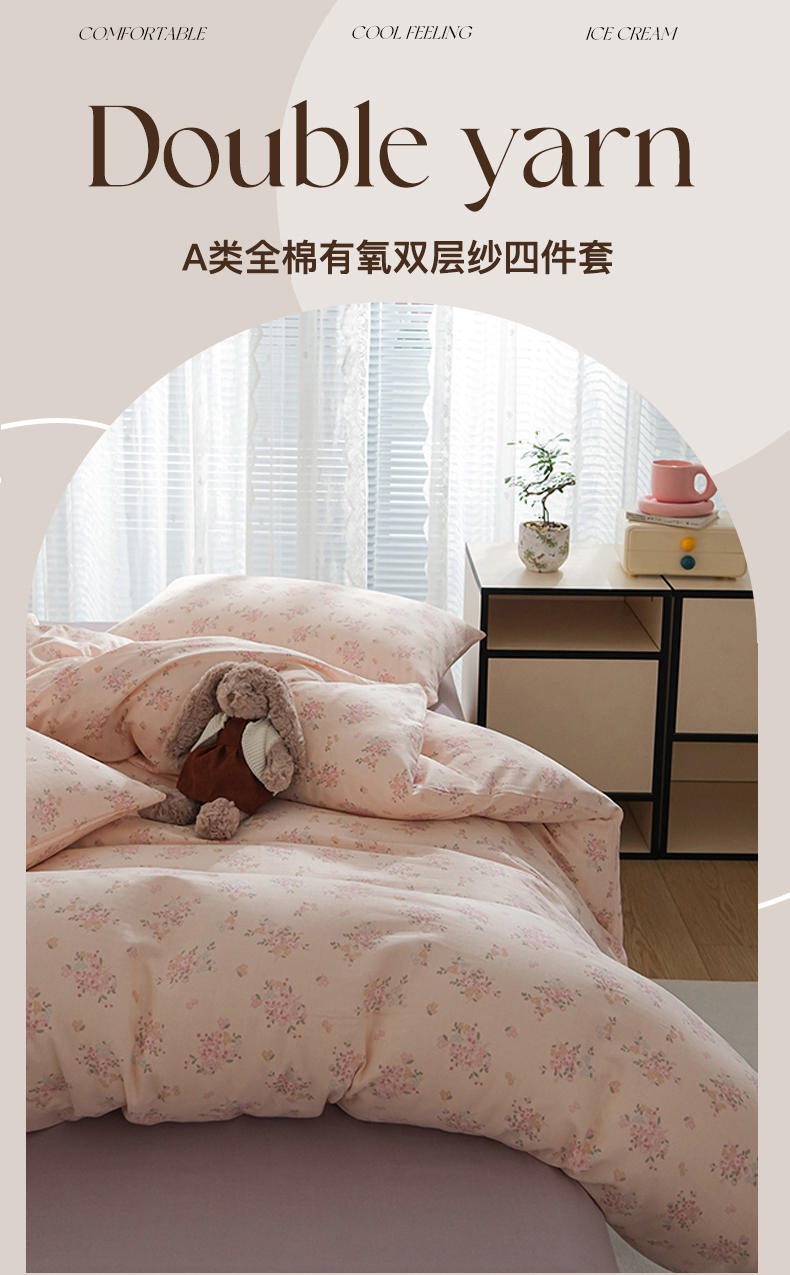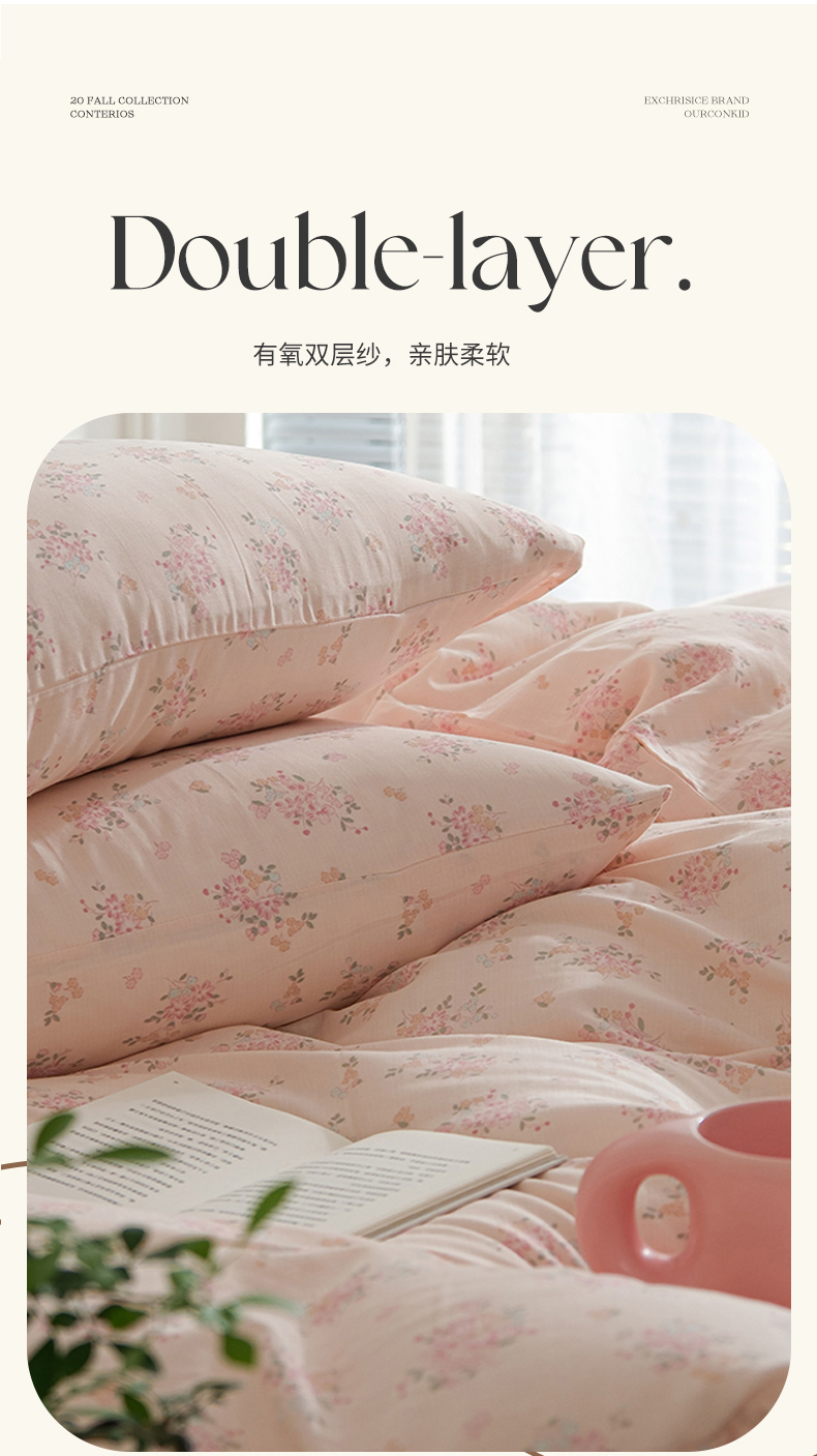 当前位置: 91家纺网 > 商品网购 > 床品套件 > 四件套 > 双层纱四件套 > 麦伦家居 2024秋冬新款A类全棉有氧双层纱四件套 普罗旺斯粉