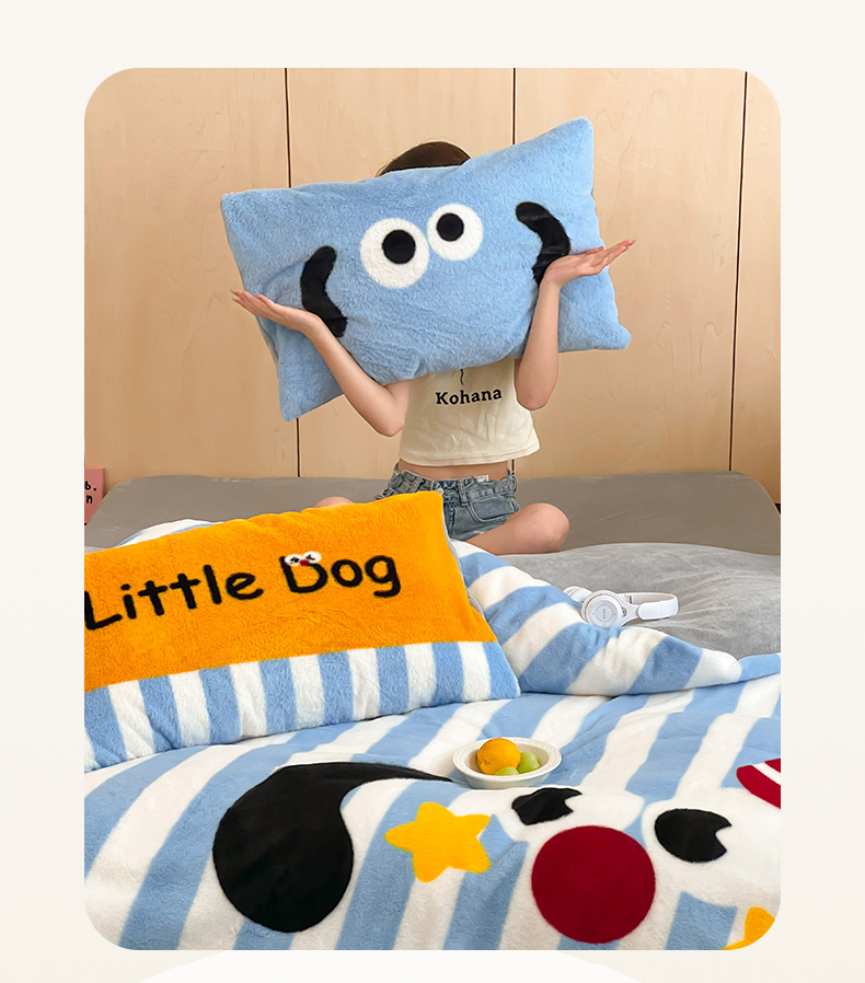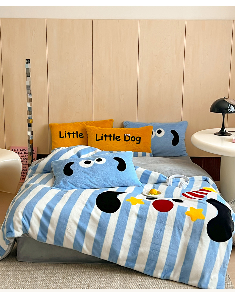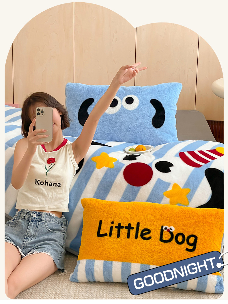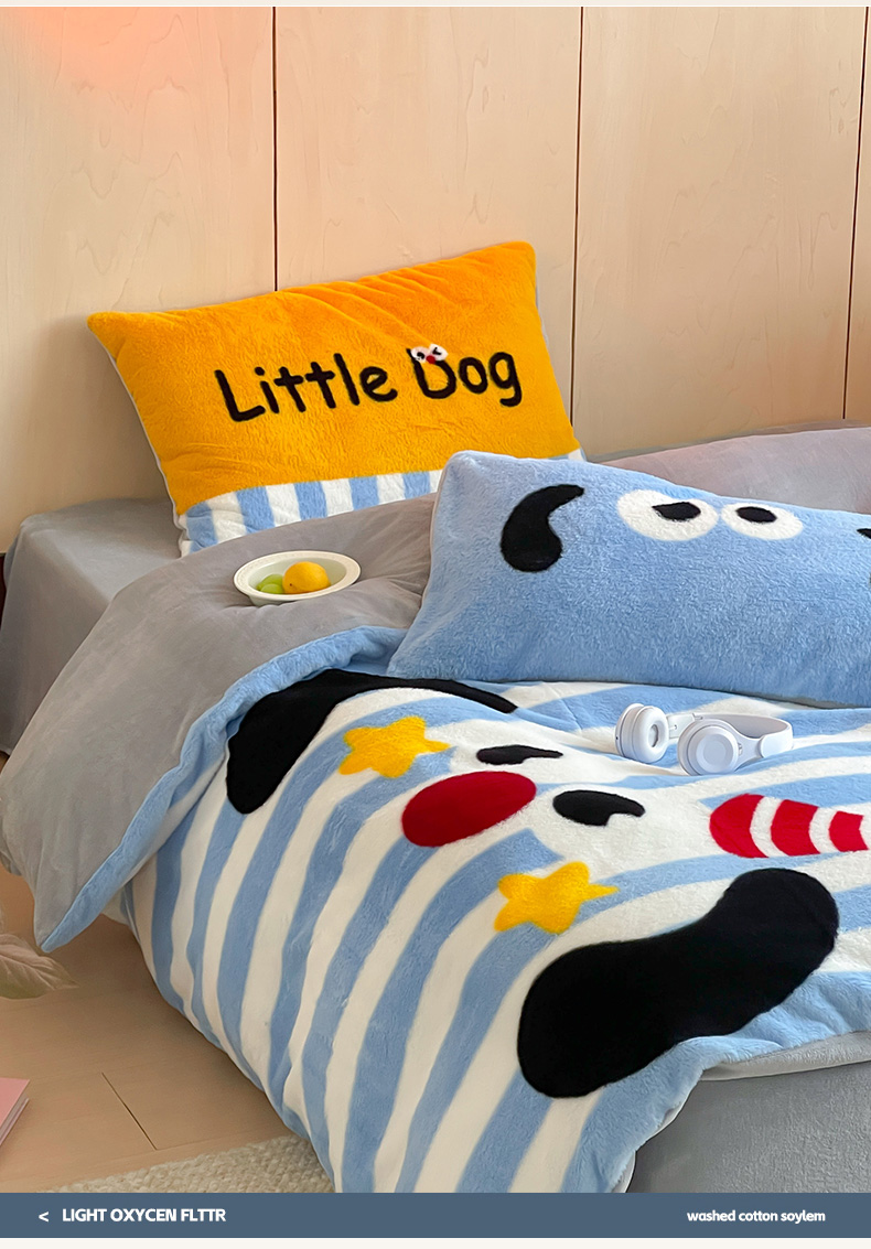 商品名称:安哆啦家纺 2024新款兔毛绒大版卡通牛奶绒兔兔绒印花四件套 圣诞狗