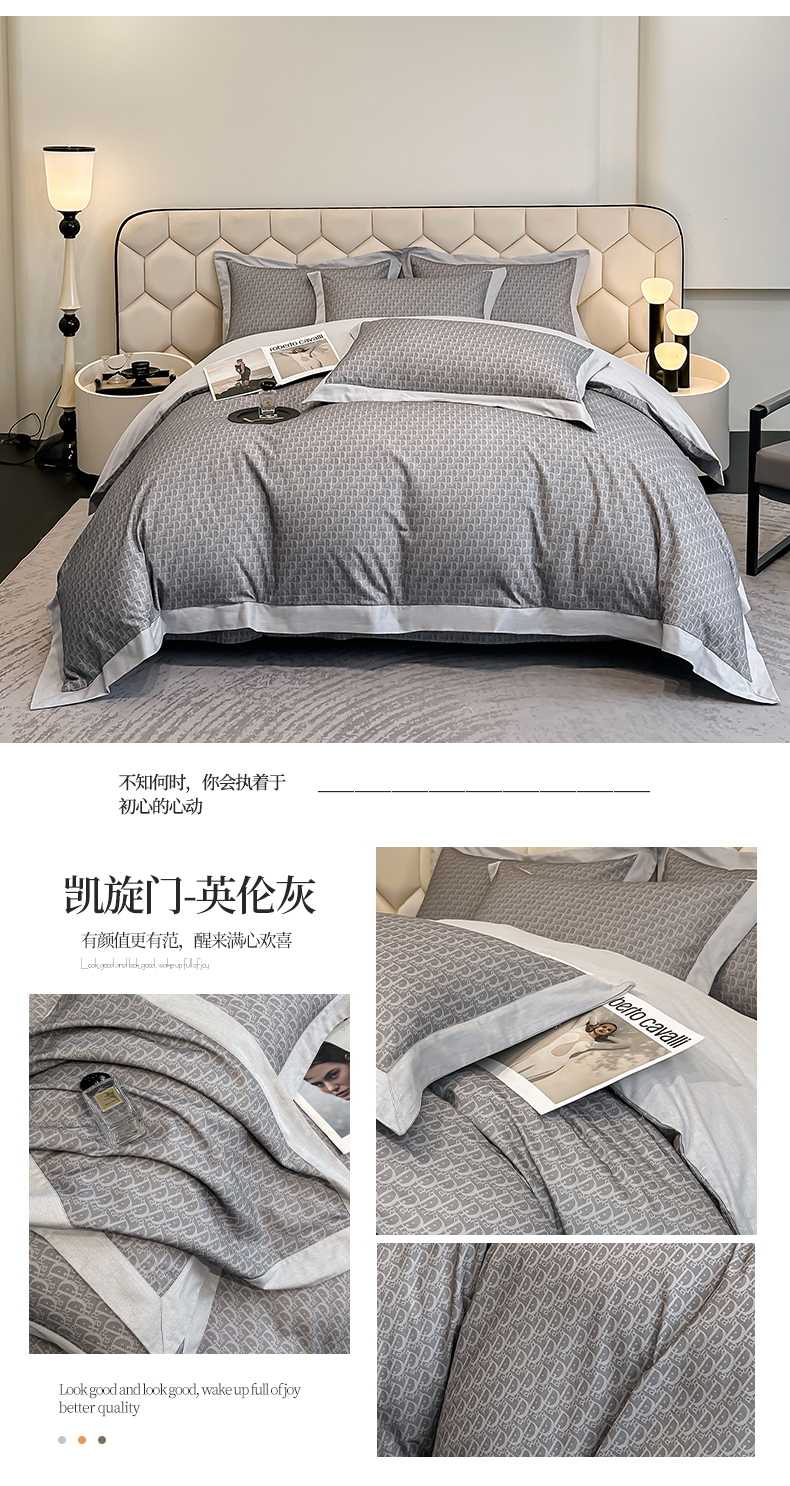 雲归梦 2024新款全棉纯棉轻奢加厚磨毛拼角工艺四件套 凯旋门-英伦灰