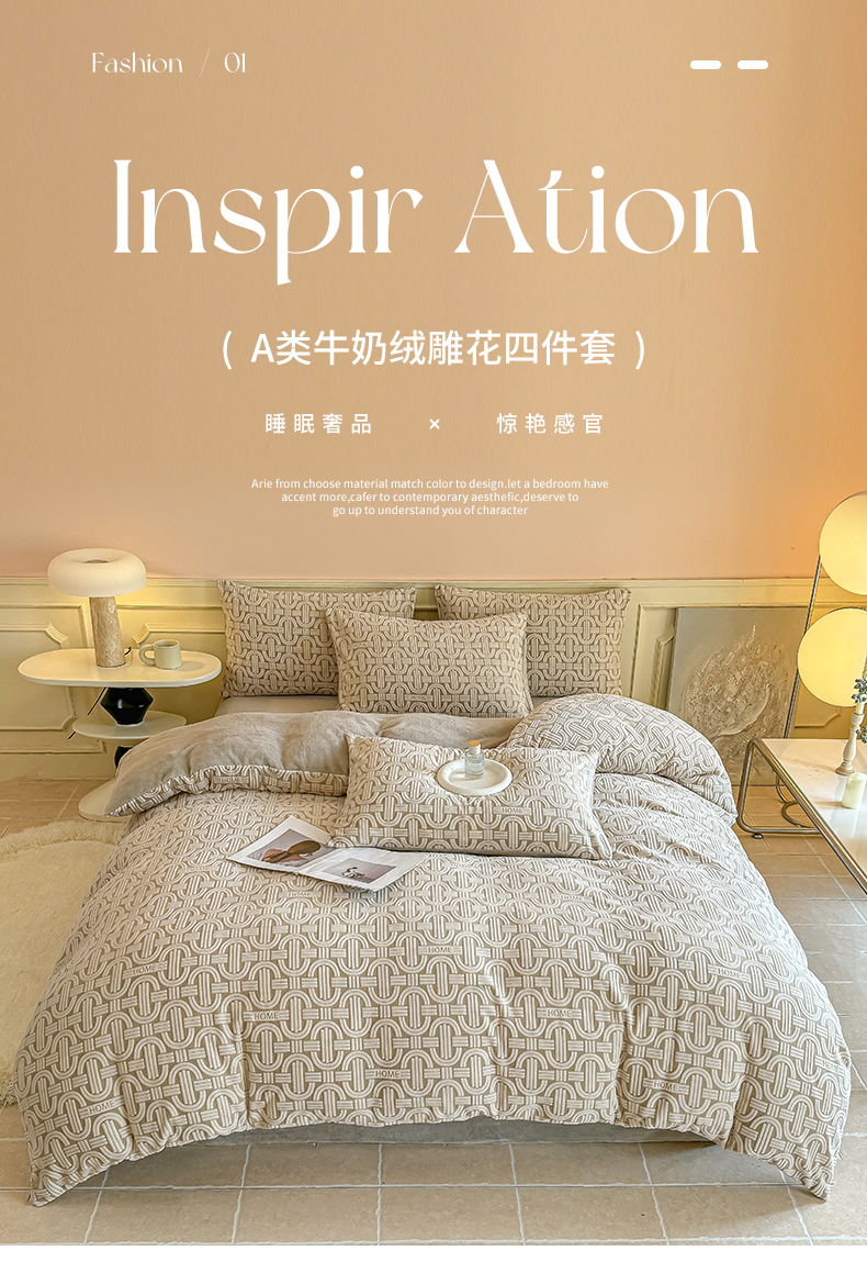 (总)大境 2025秋冬新款A类230克牛奶绒雕花烂花绒宝宝绒床笠款床单款四件套,蝶恋花语,花恋,浪漫花香 粉,浪漫花香 绿,叶之恋,郁金香粉,月光森林
