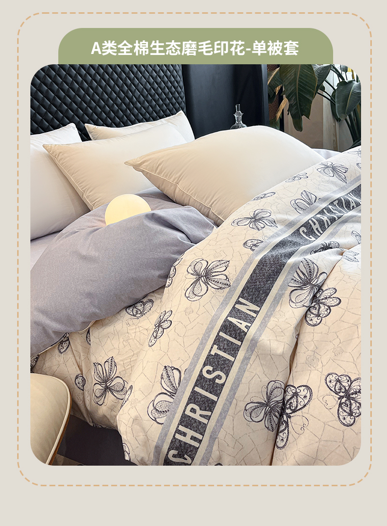 • 91家纺网 家纺一手货源 找家纺 大柏树 2025新款A类全棉磨毛印花单被套 淡雅年华