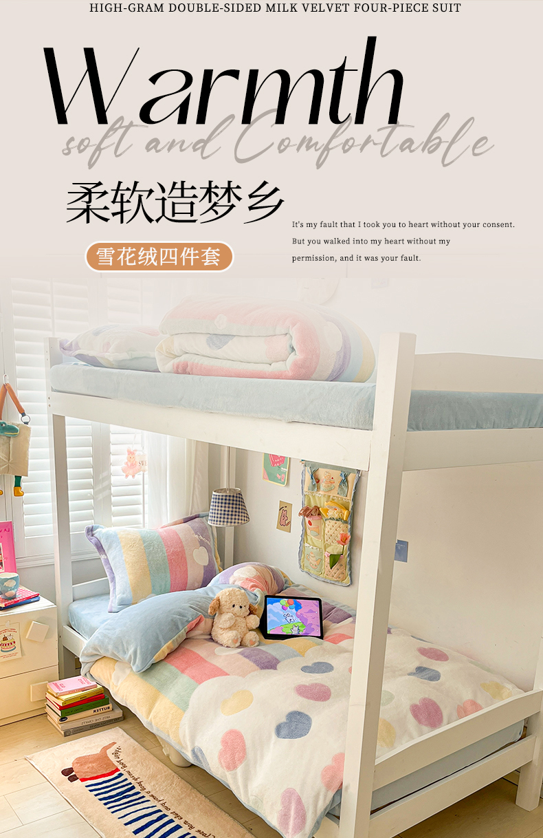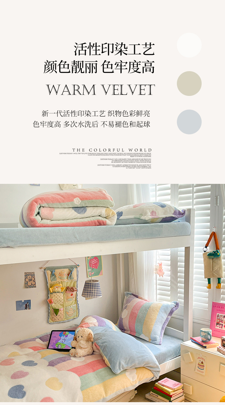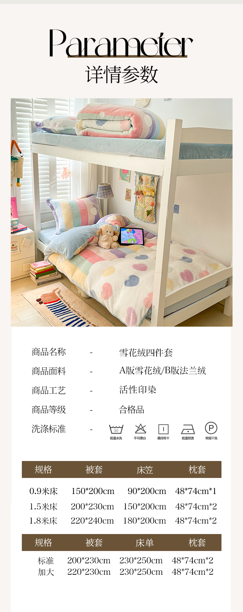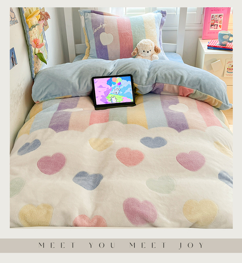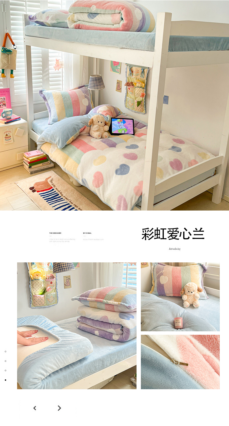 当前位置: 91家纺网 > 商品网购 > 床品套件 > 三件套 > 川悦生活 2024新款立体雪花绒宿舍床笠款三件套四件套 彩虹爱心兰
