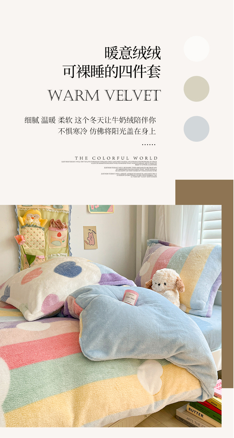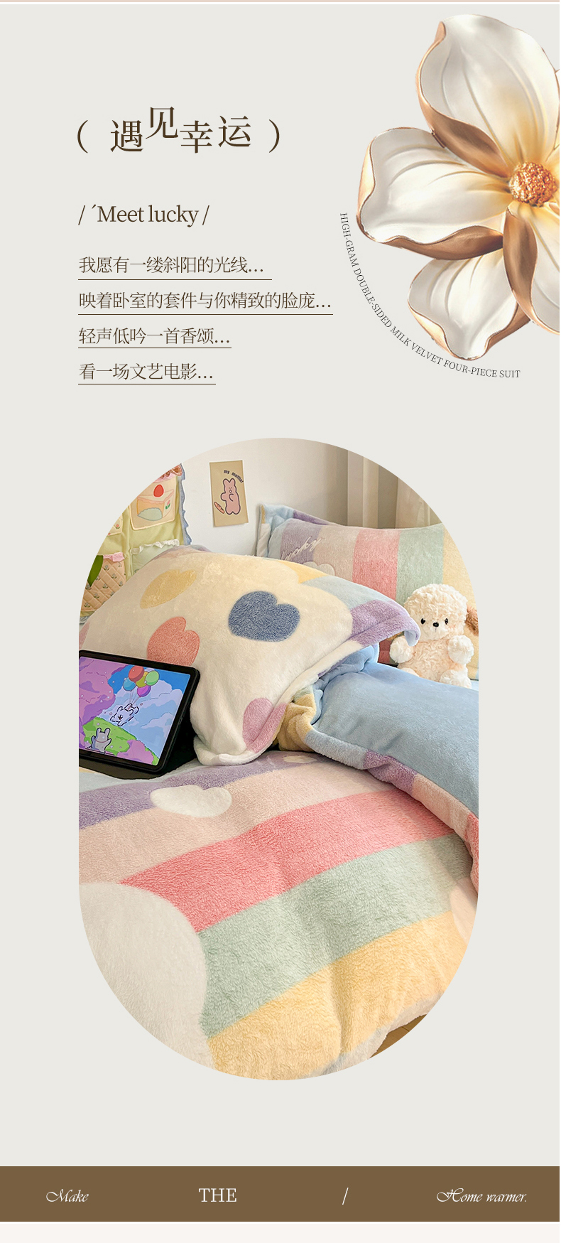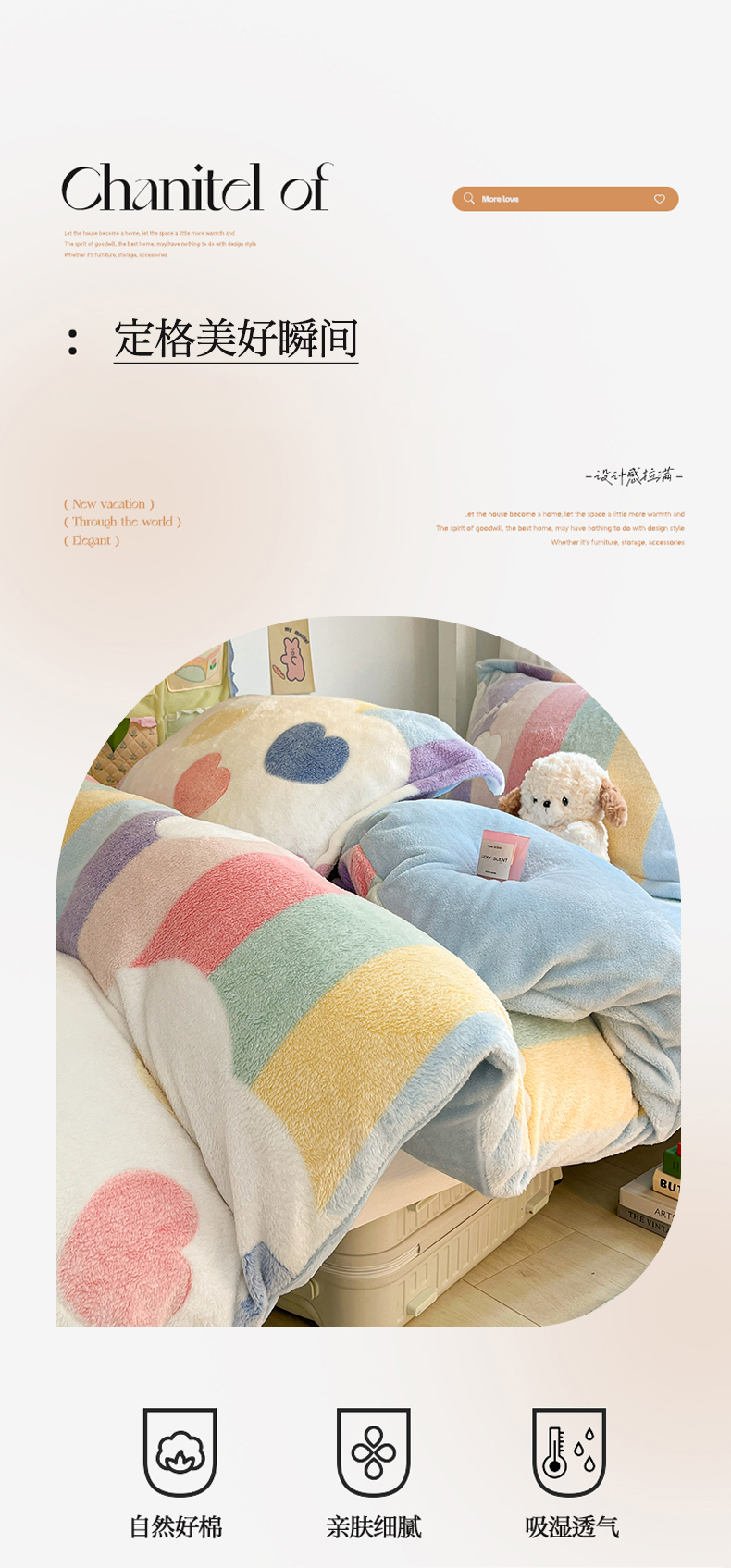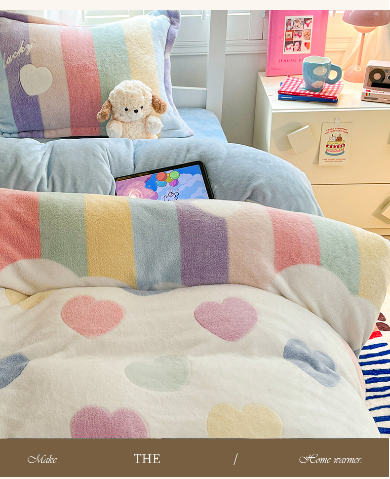 当前位置: 91家纺网 > 商品网购 > 床品套件 > 三件套 > 川悦生活 2024新款立体雪花绒宿舍床笠款三件套四件套 彩虹爱心兰