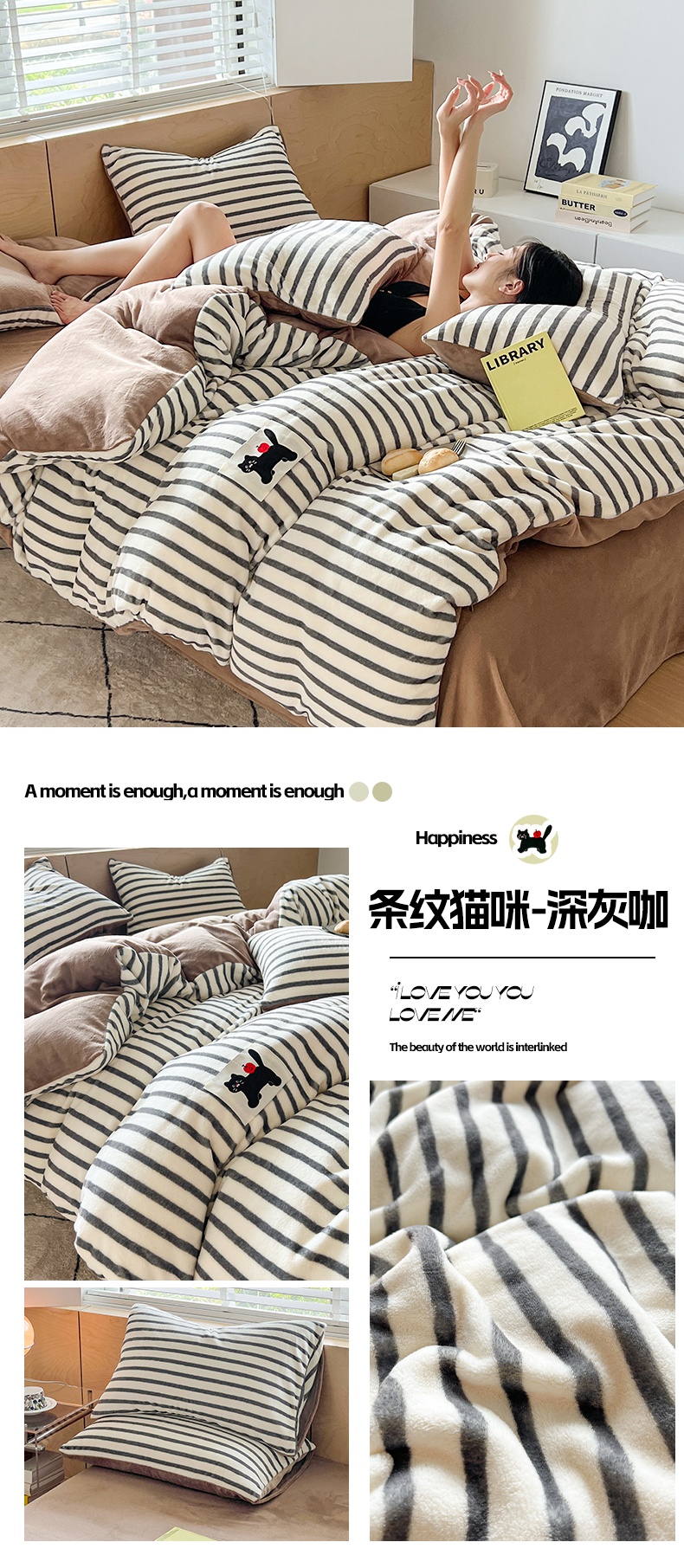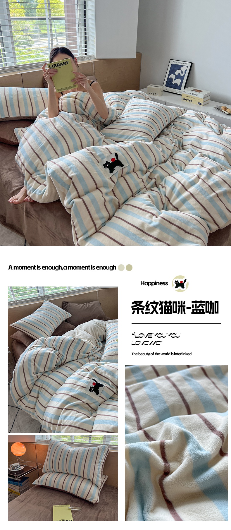 当前位置: 91家纺网 > 商品网购 > 床品套件 > 四件套 > 牛奶绒四件套 > 晨曦家纺 2024新款加厚无印风牛奶绒四件套 条纹猫咪-蓝咖