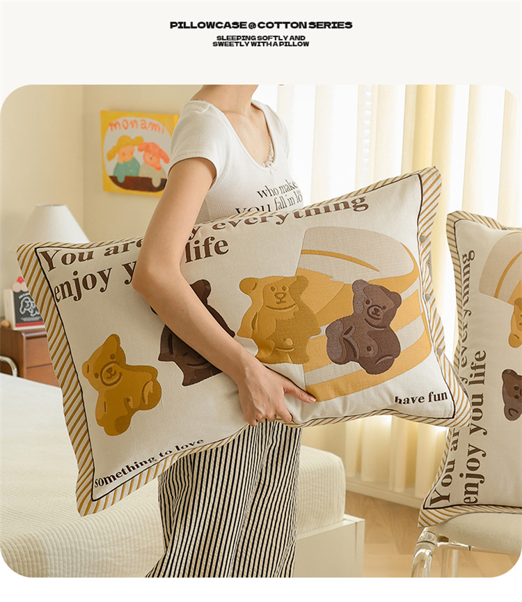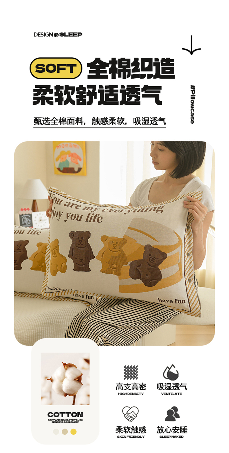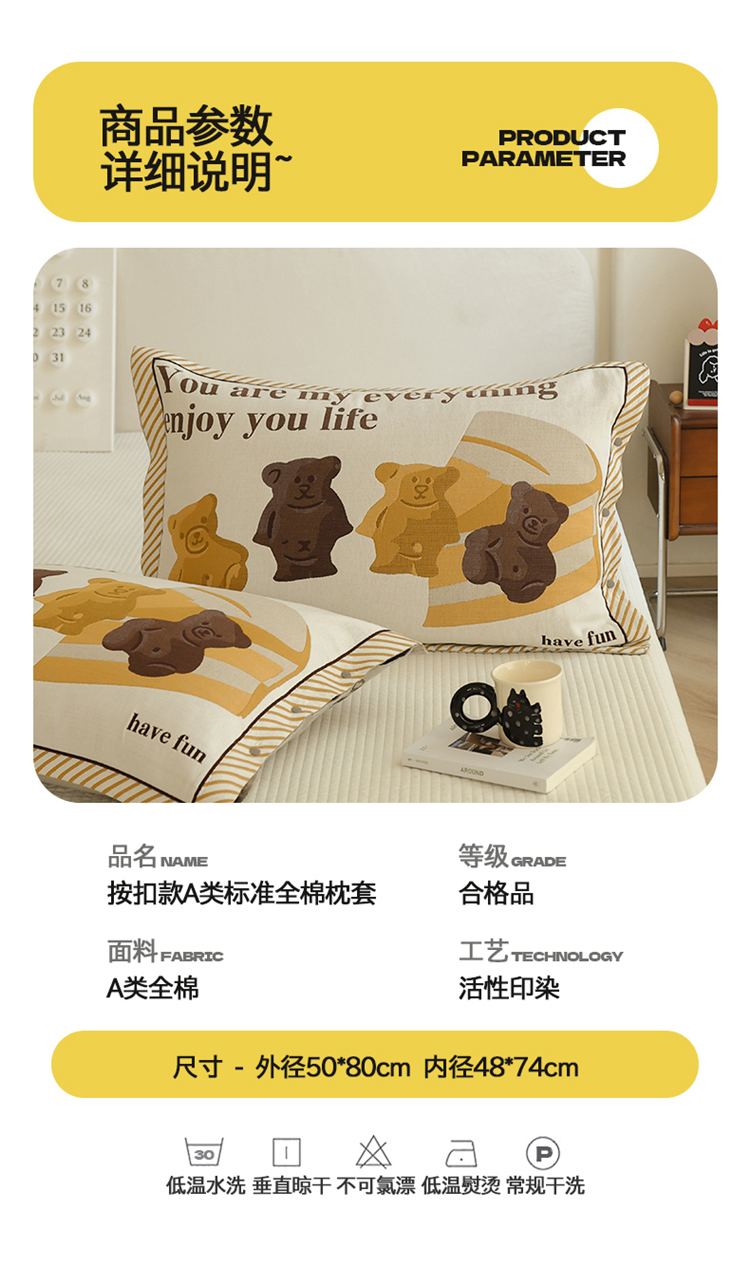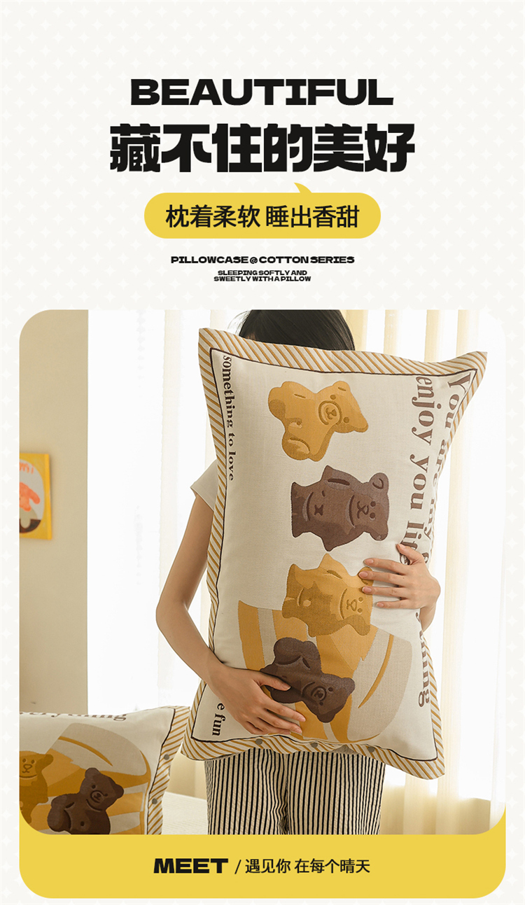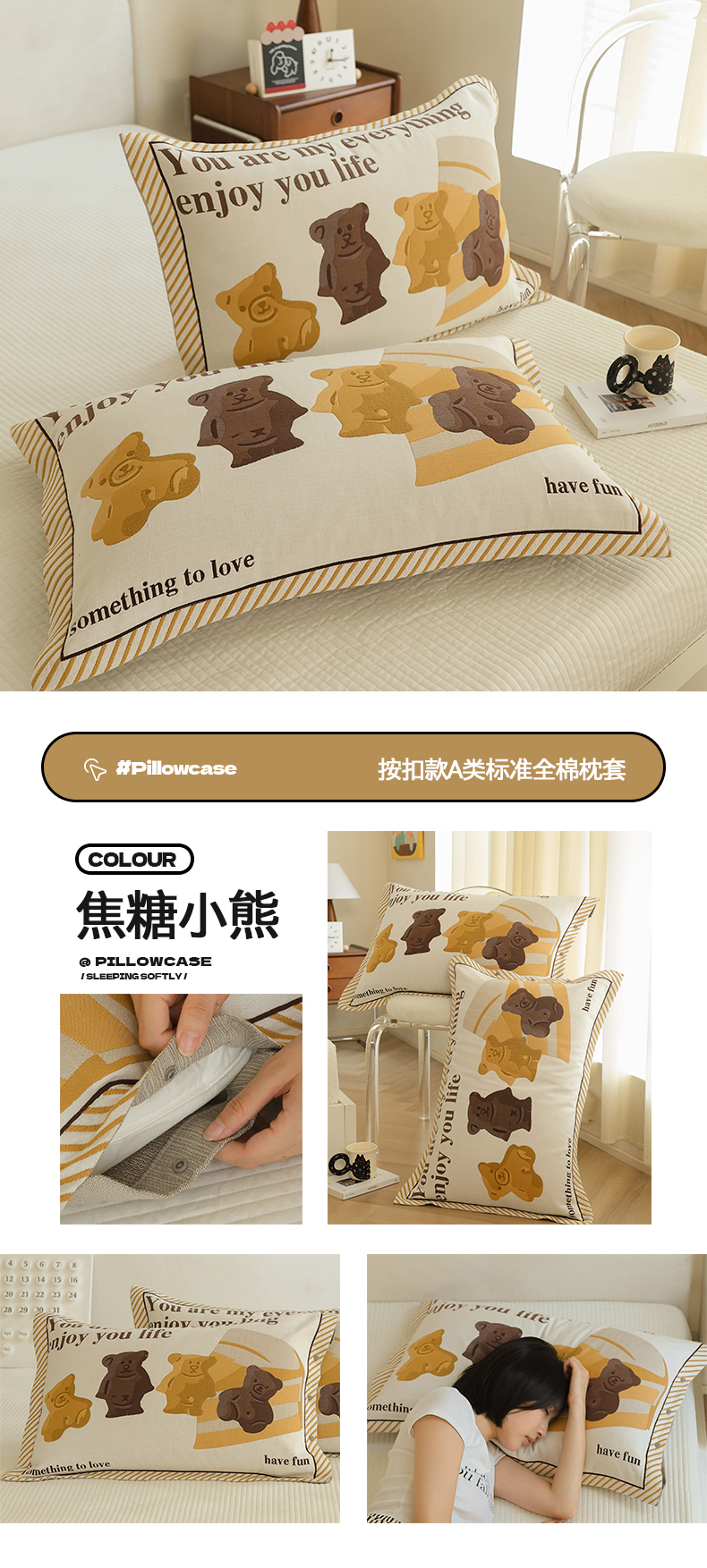 商品名称:2024新款全棉四层纱布枕套一对装纽扣款枕套 焦糖小熊