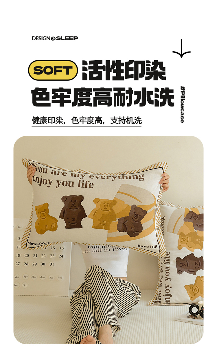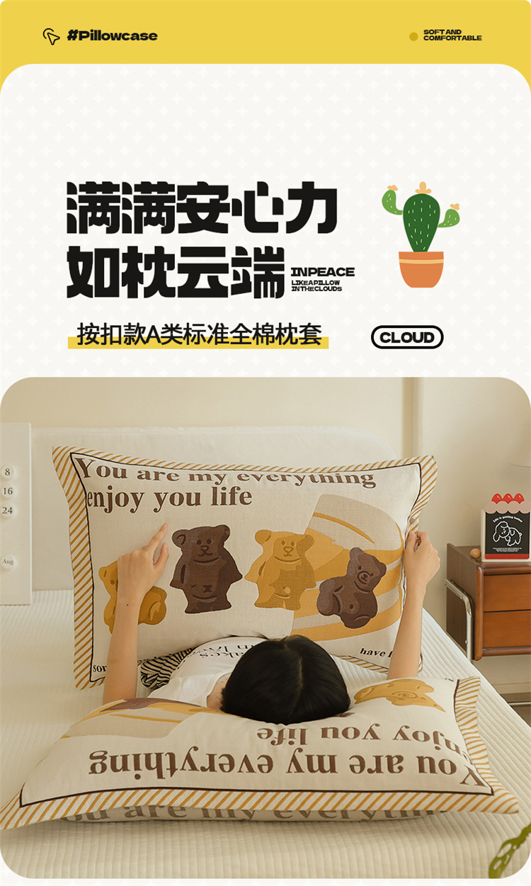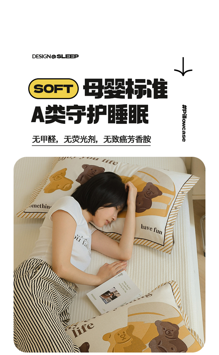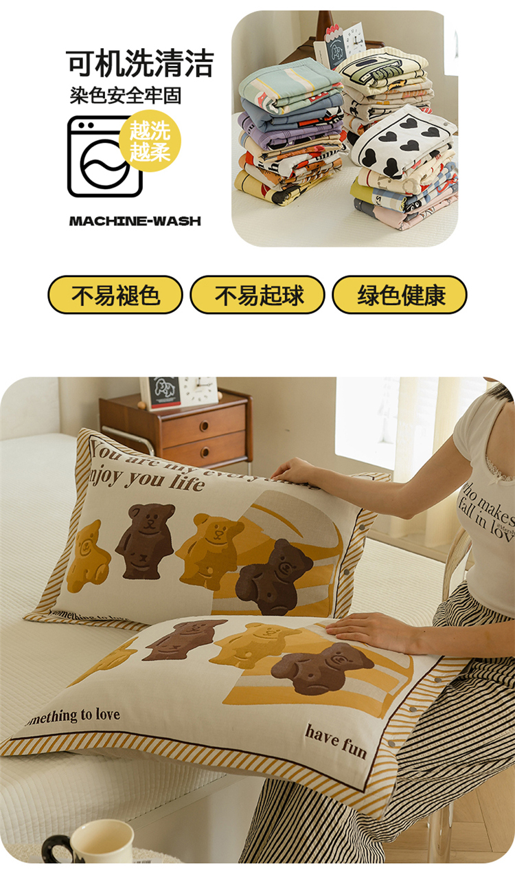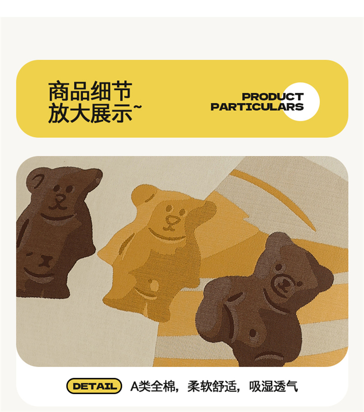 商品名称:2024新款全棉四层纱布枕套一对装纽扣款枕套 焦糖小熊
