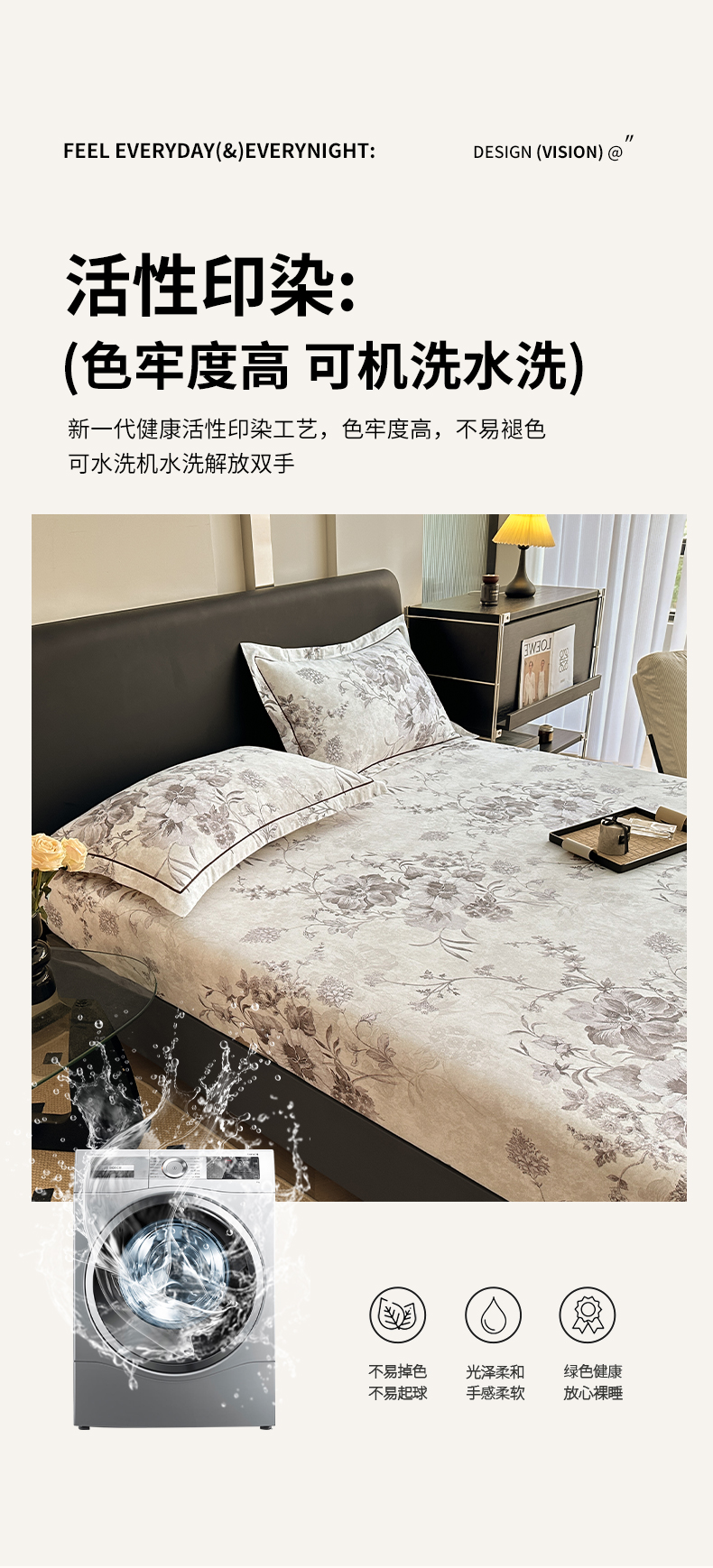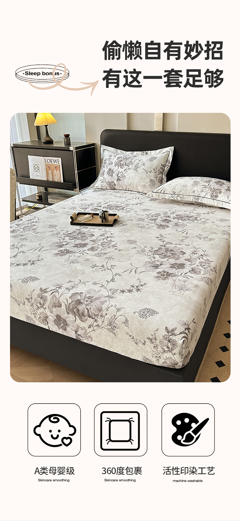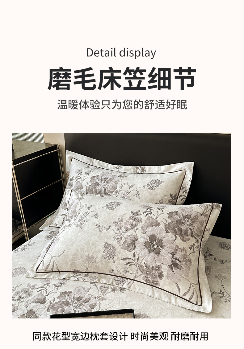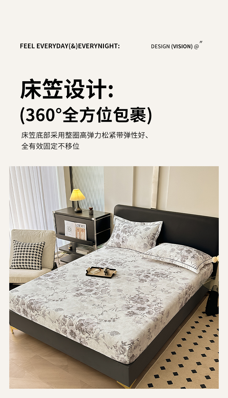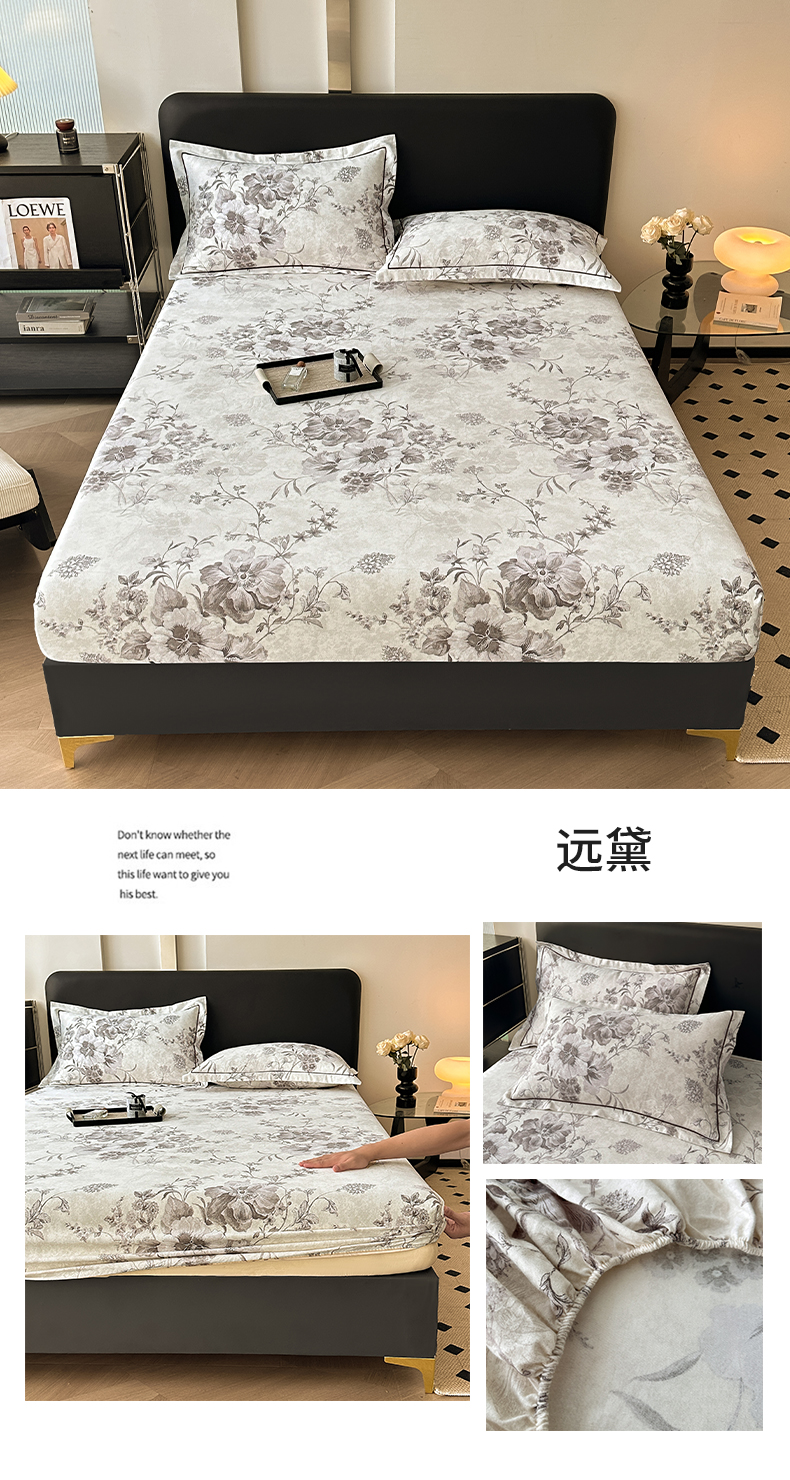 商品名称:大柏树 2025新款A类全棉磨毛印花单床笠 远黛灰