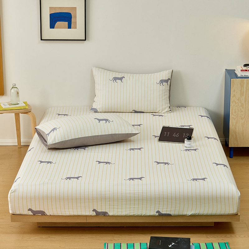 8小时家纺 2024新款40s双层纱单品四件套系列-床笠 黄白条纹豹子
