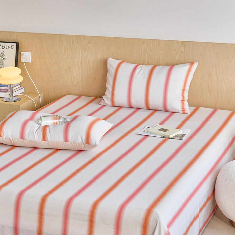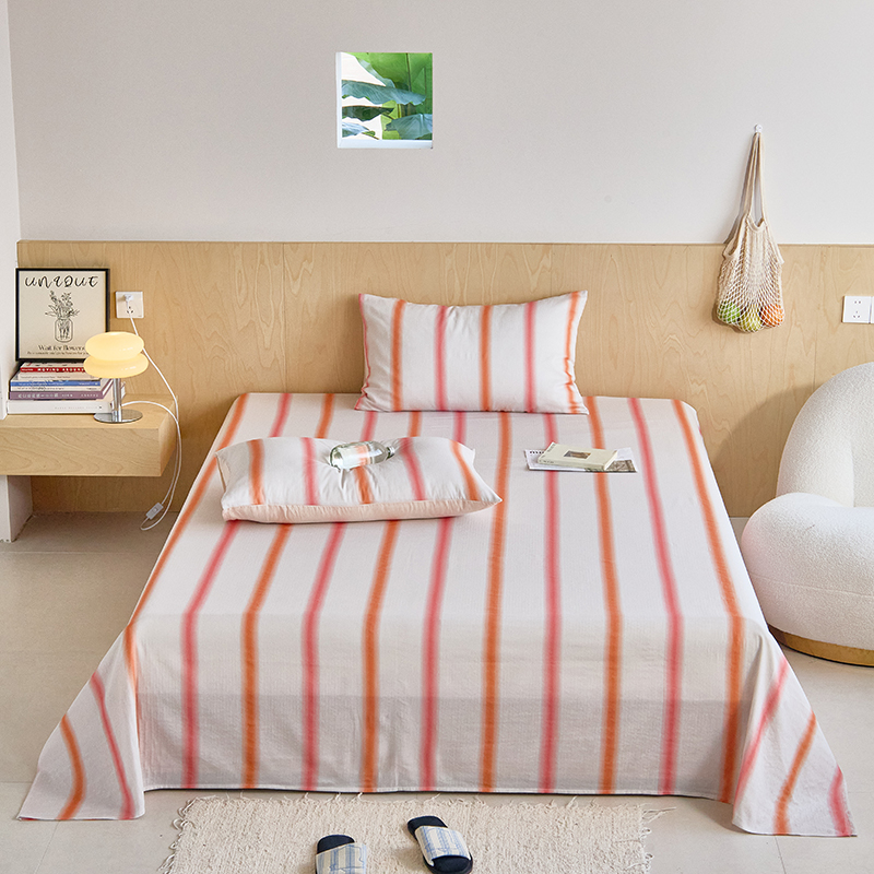 8小时家纺 2024新款40s双层纱单品四件套系列-床单 条纹红橙
