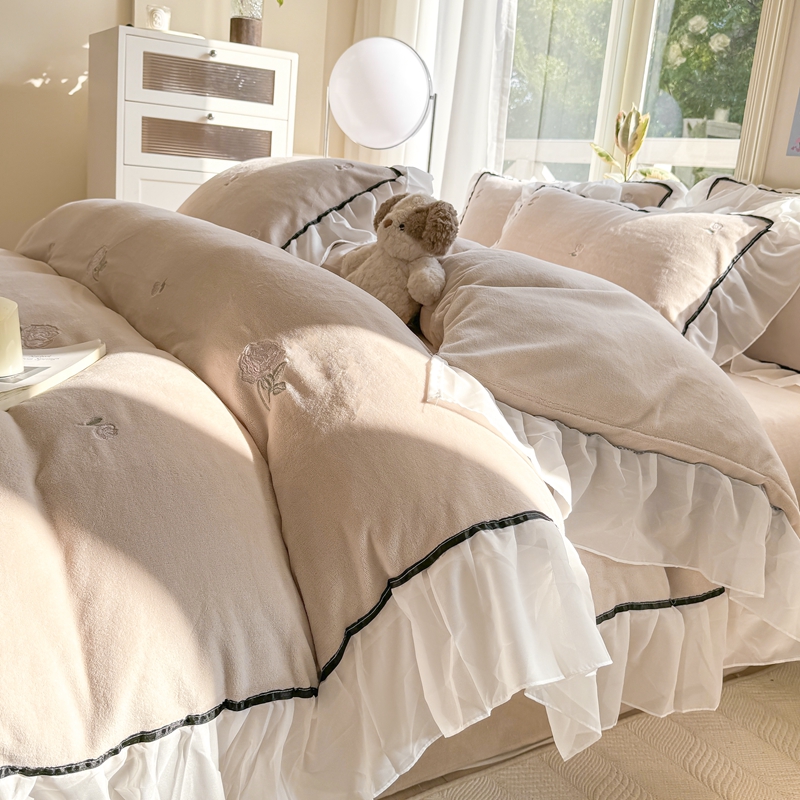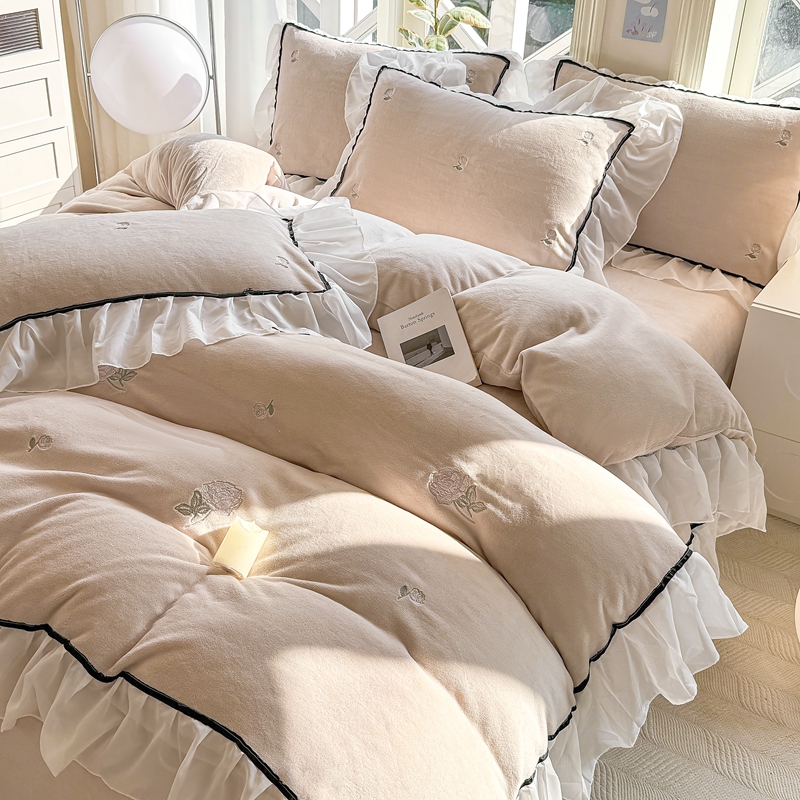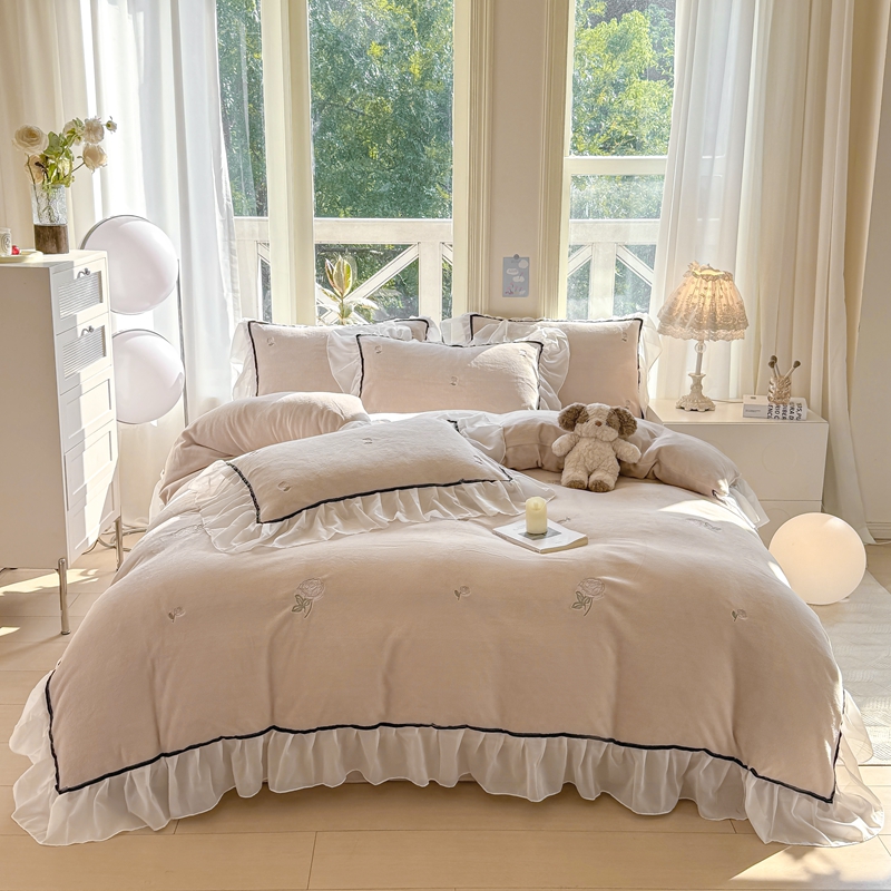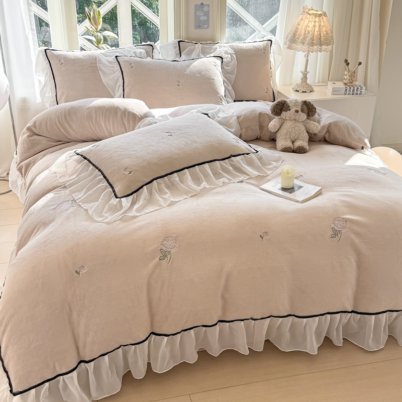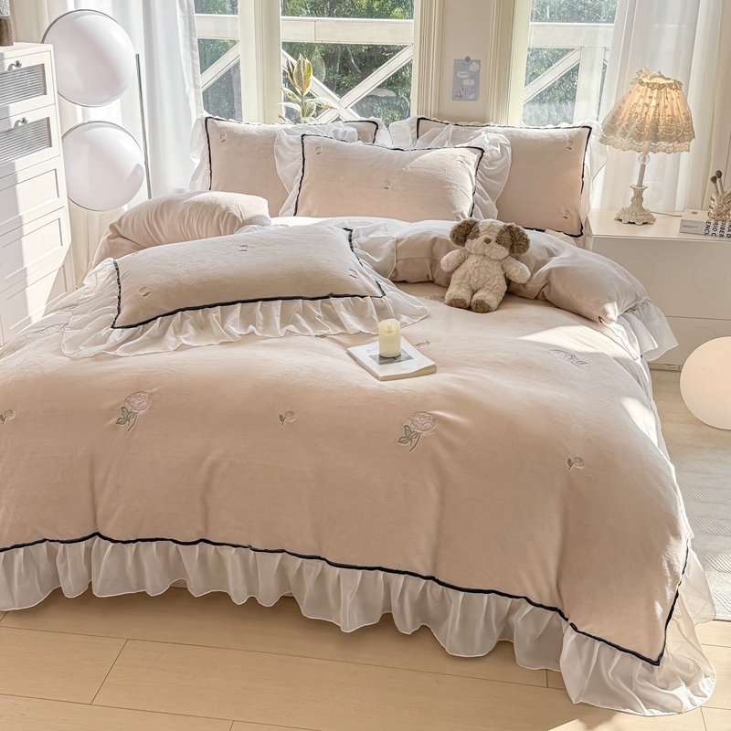 二八年华 2024新款洛神玫瑰刺绣花边牛奶绒四件套 洛神-奶杏
