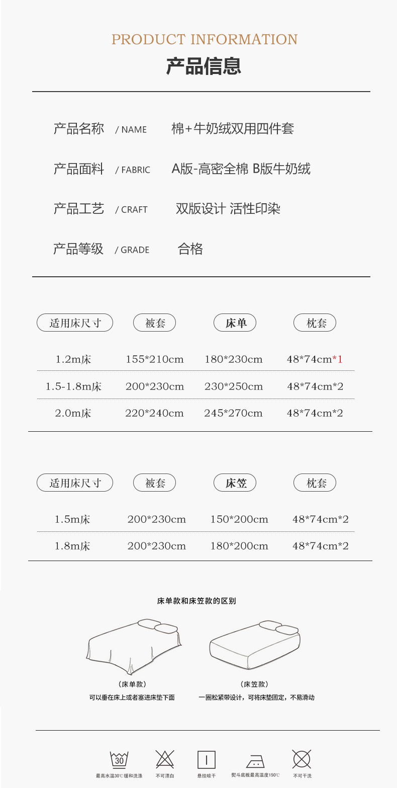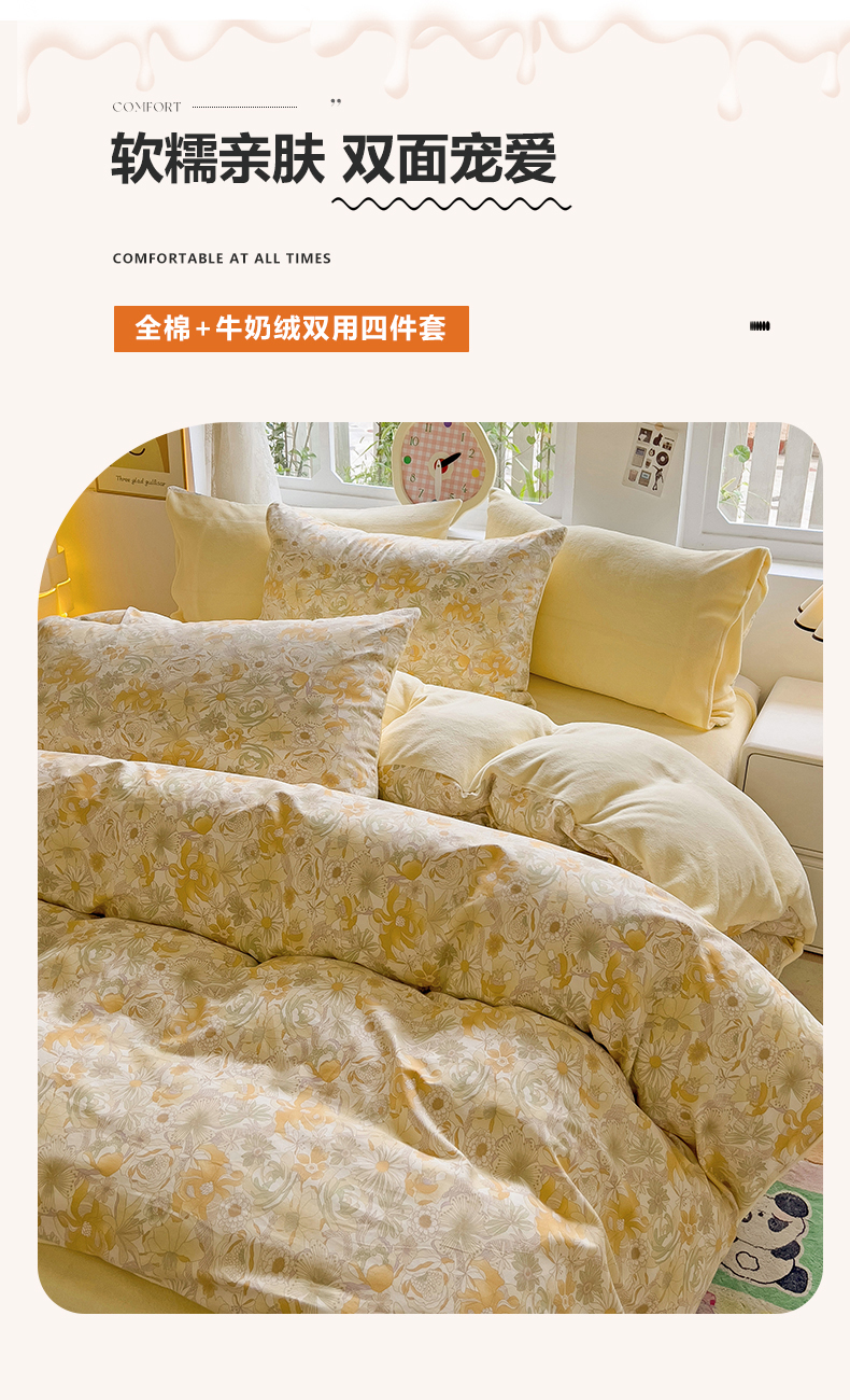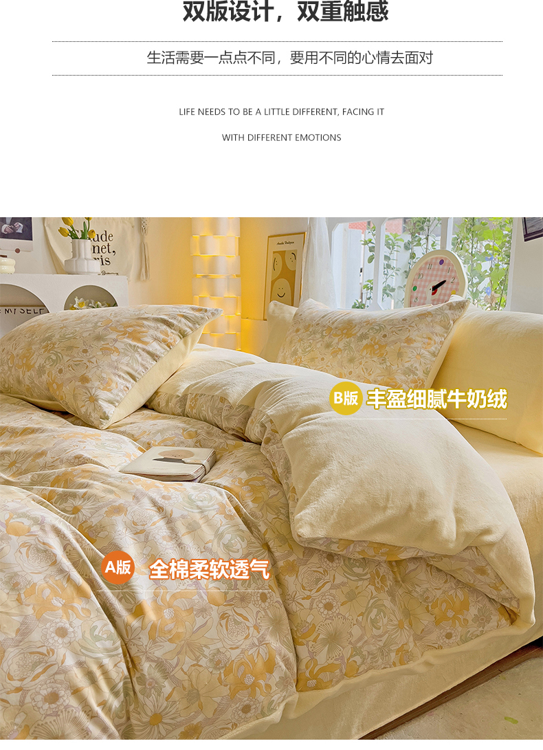商品名称:捌月 2024新款棉加绒A版13372全棉B版高克重牛奶绒四件套直播新品--第二批 安冉