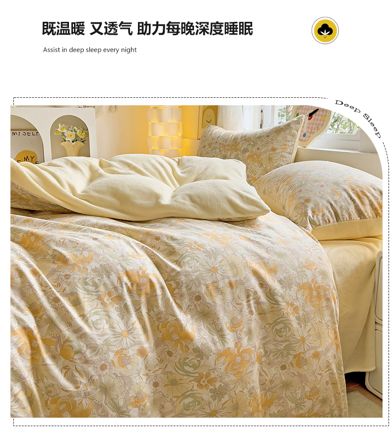 捌月 2024新款棉加绒A版13372全棉B版高克重牛奶绒四件套直播新品--第二批 安冉