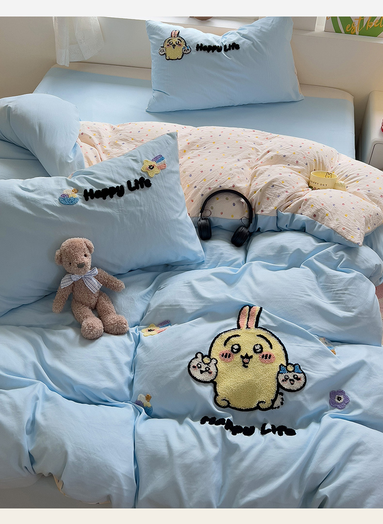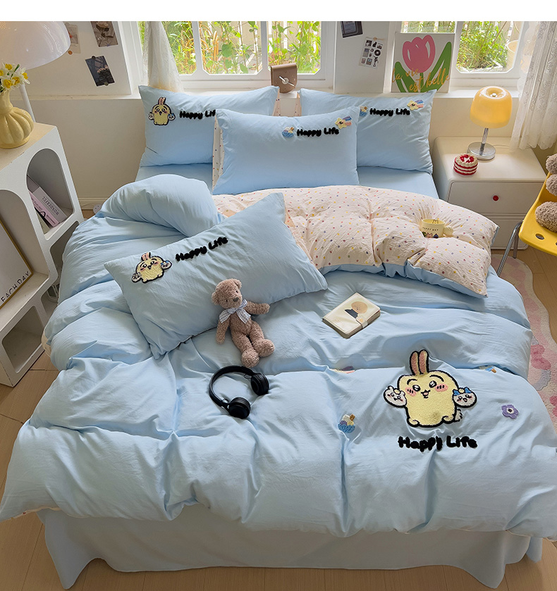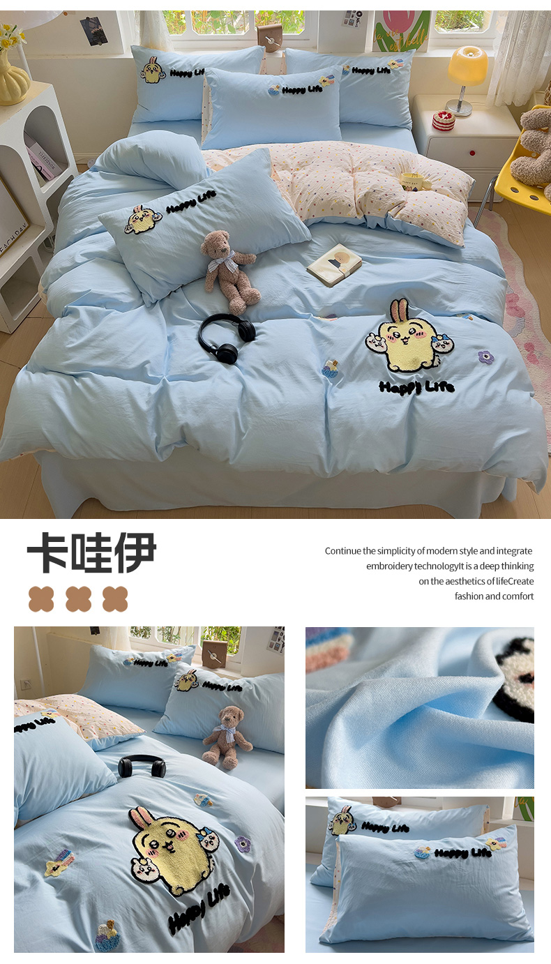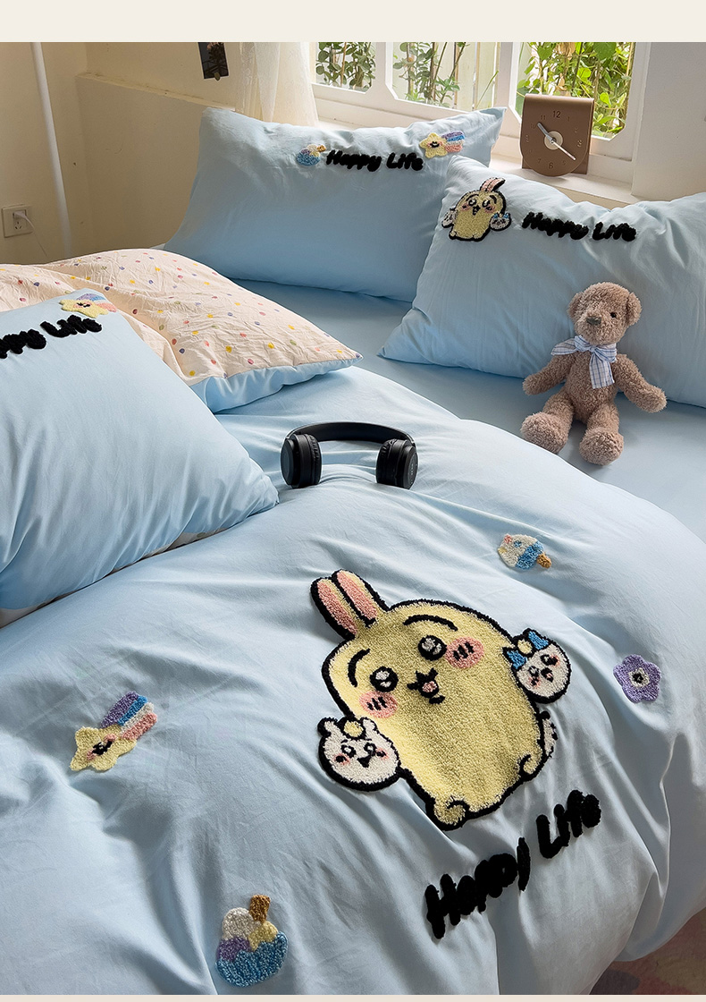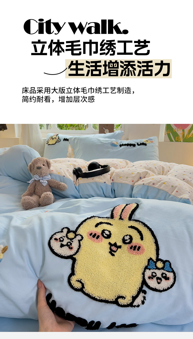 当前位置: 91家纺网 > 商品网购 > 床品套件 > 四件套 > 水洗棉四件套 > 眠帛家居 2024新款加厚磨毛水洗棉毛巾绣加印大版卡通四件套 卡哇伊