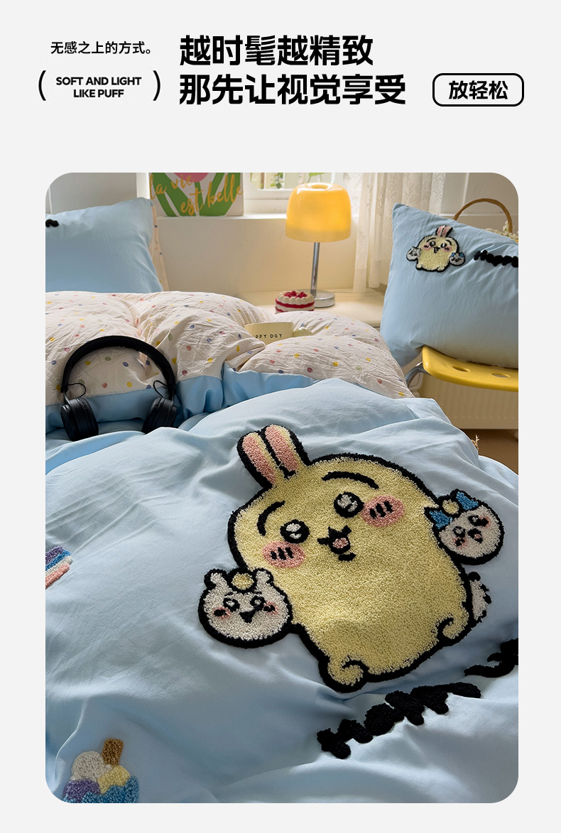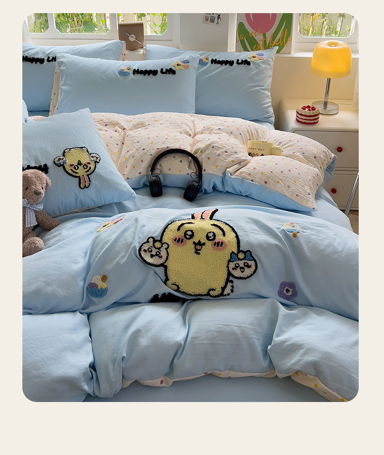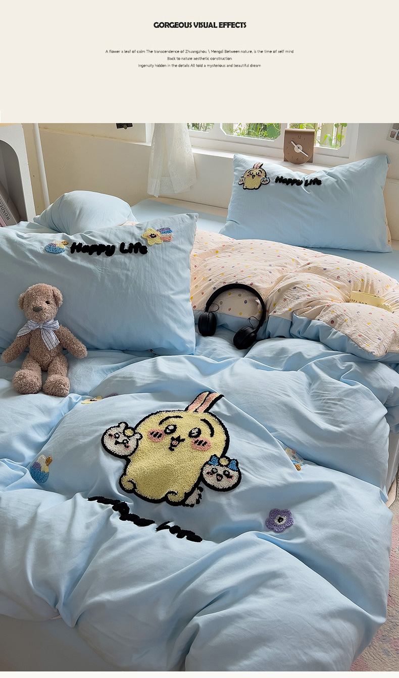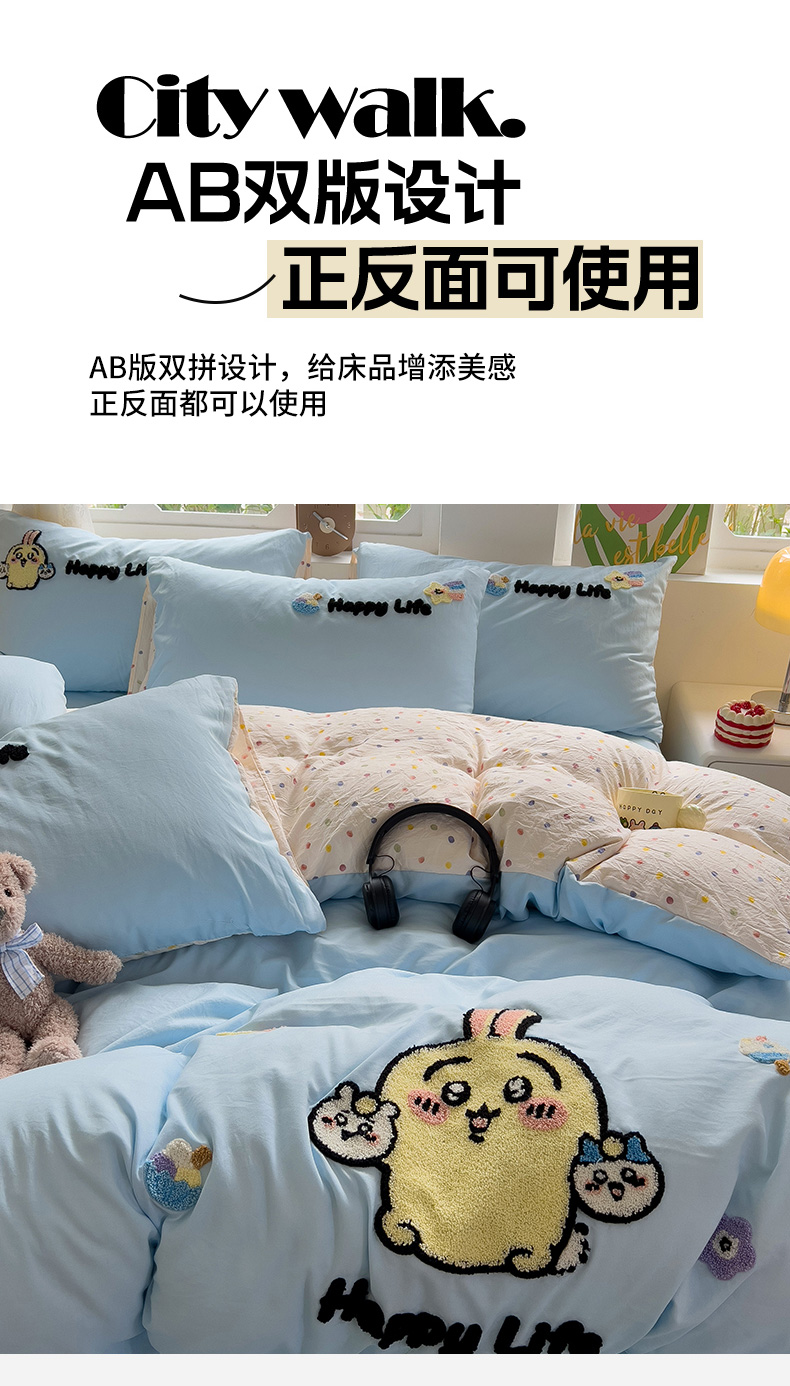 当前位置: 91家纺网 > 商品网购 > 床品套件 > 四件套 > 水洗棉四件套 > 眠帛家居 2024新款加厚磨毛水洗棉毛巾绣加印大版卡通四件套 卡哇伊