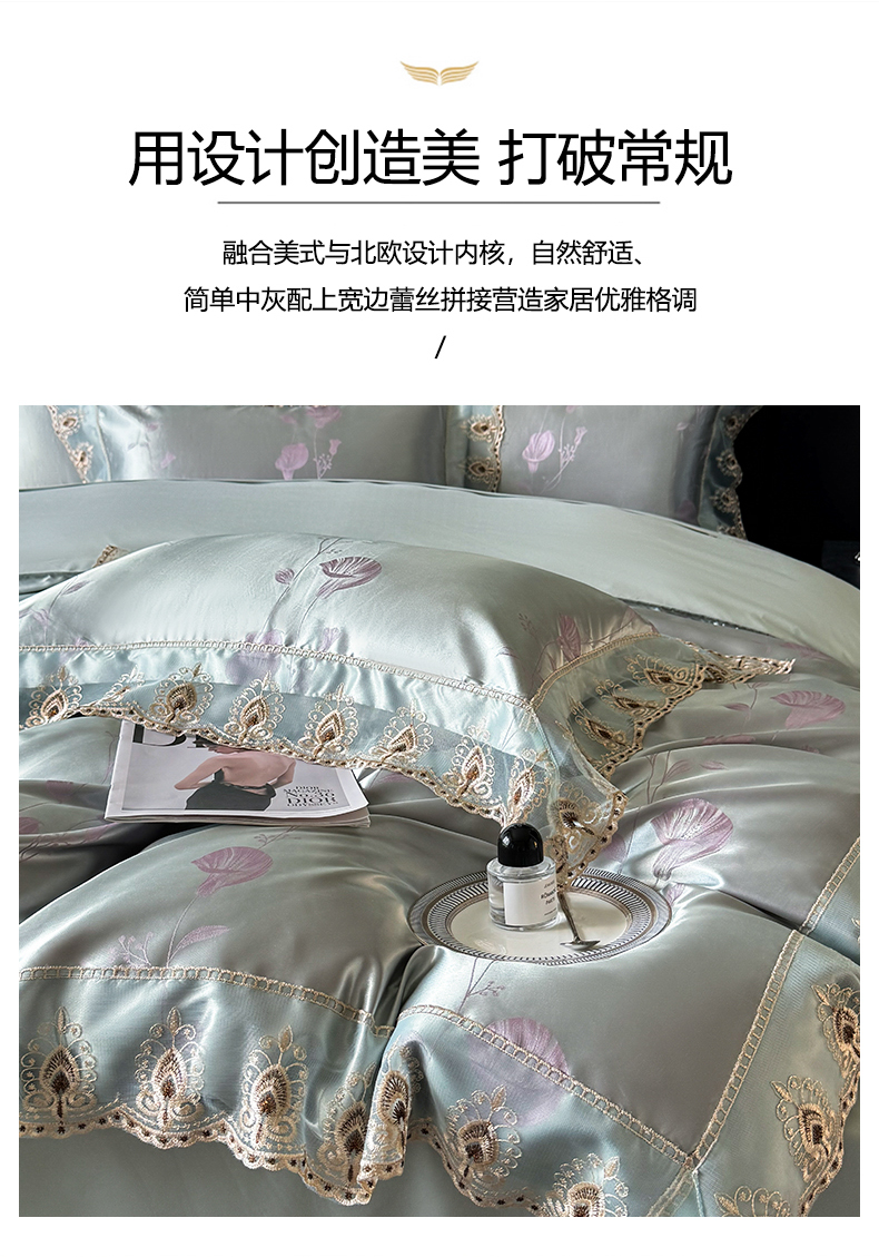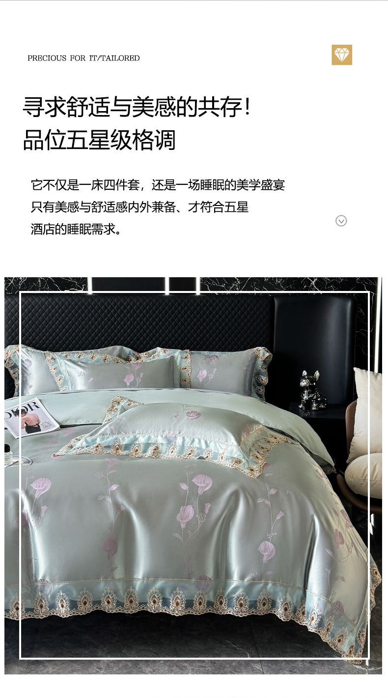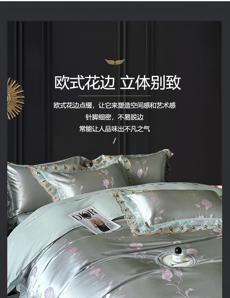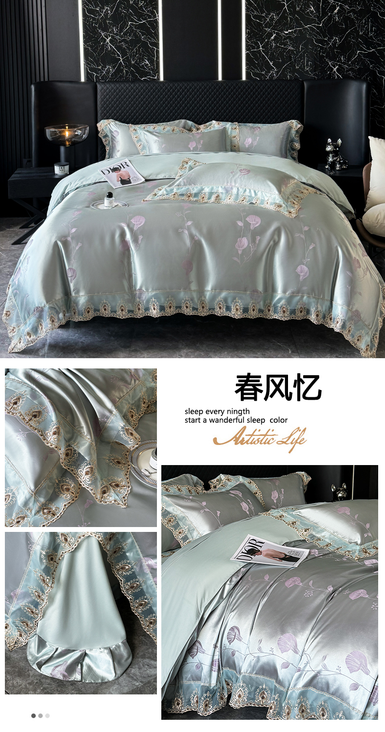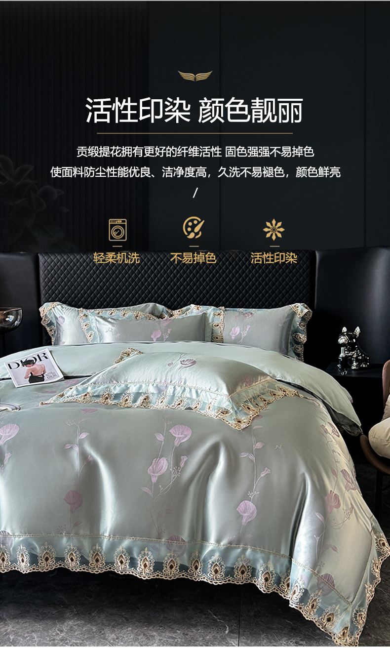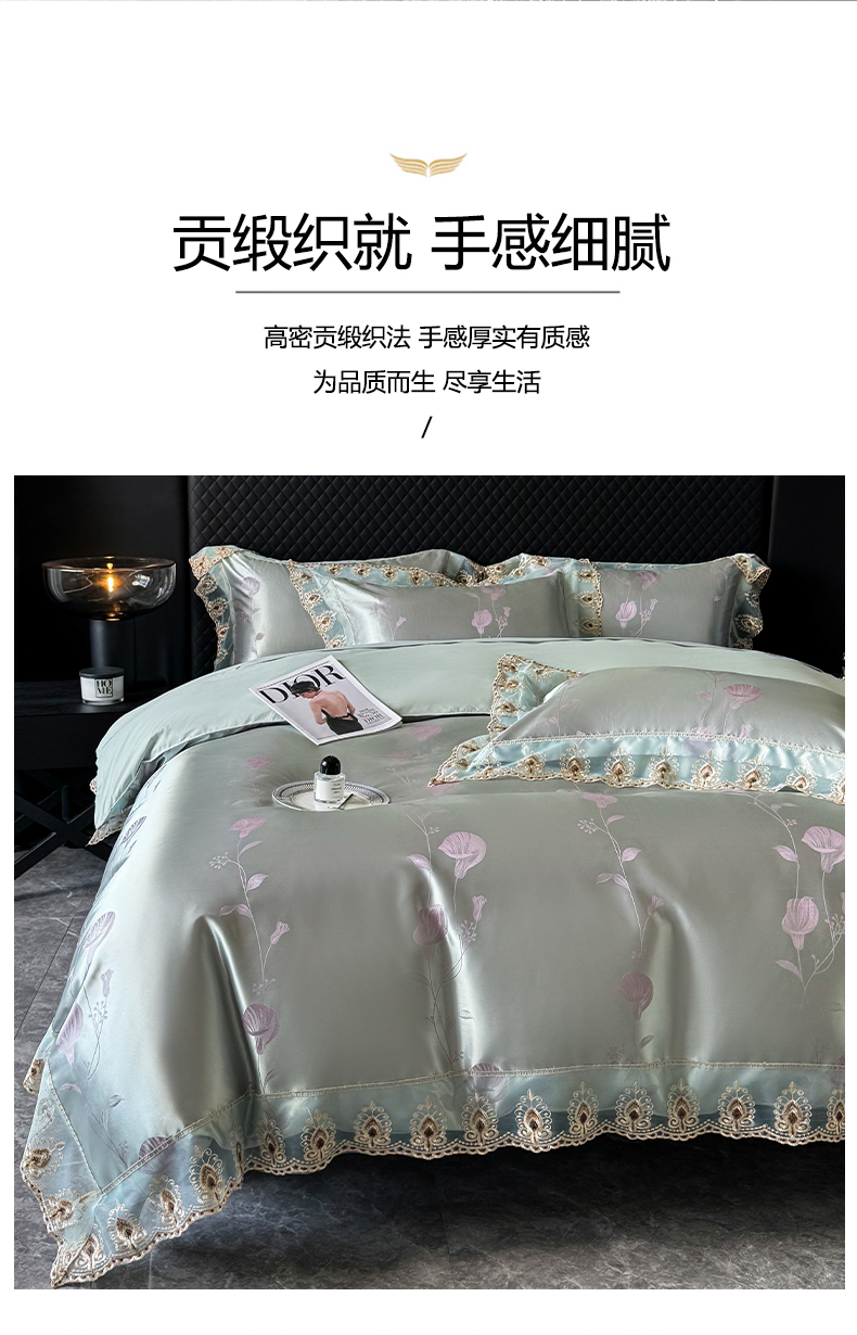 商品名称:七夜居 2025新款蕾丝花边欧式贡缎提花四件套礼盒装 春风忆