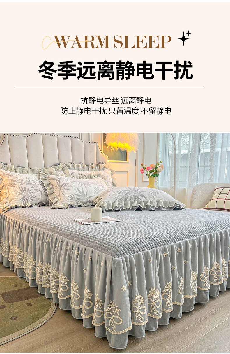 当前位置: 91家纺网 > 商品网购 > 床品套件 > 三件套 > 宜凡家纺 2024新款牛奶绒雕花绒床裙三件套 玫瑰花海