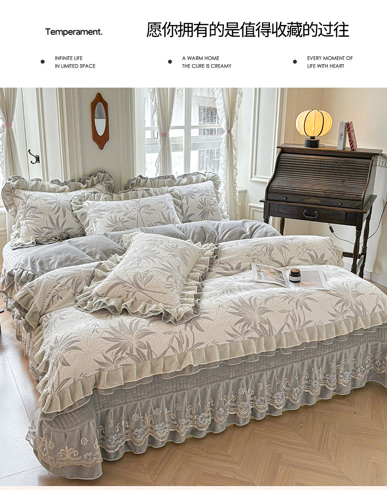 (总)宜凡家纺 2025新款兔绒提花牛奶绒夹棉床裙四件套,爱心 少女粉,爱心 粉紫,爱心 驼色,蝶舞 大红,蝶舞 米色,蝶舞 浅紫,蝶舞 玉色,简爱 苍青,简爱 豆沙紫,简爱 玉色,樱桃 苍青,樱桃 豆沙紫,樱桃 奶油白