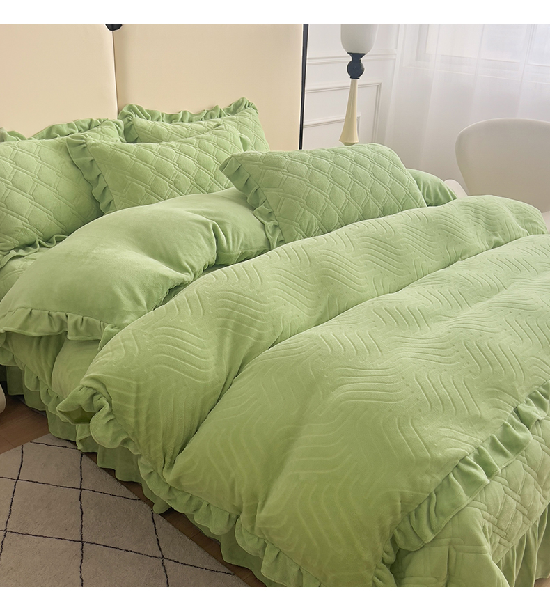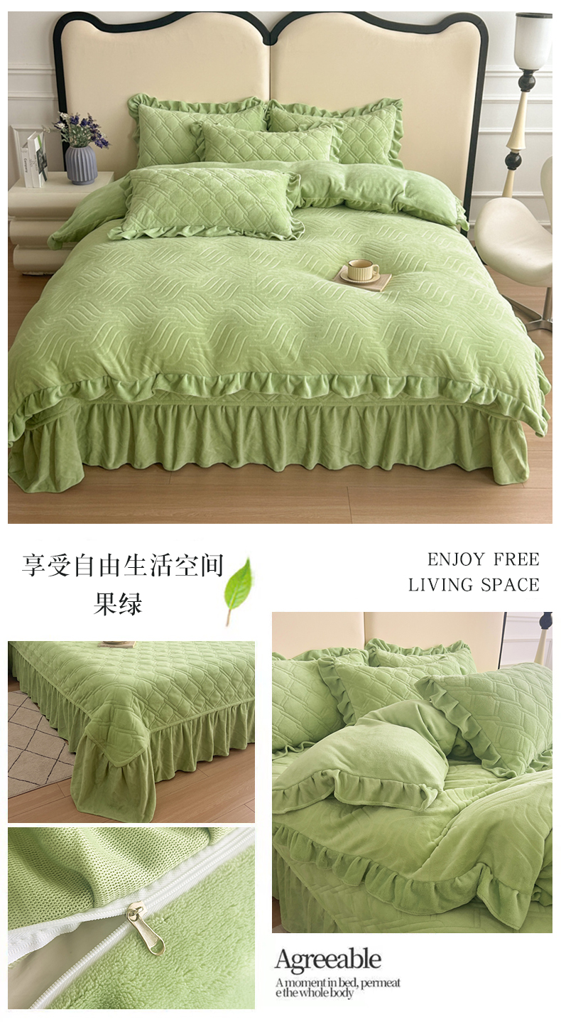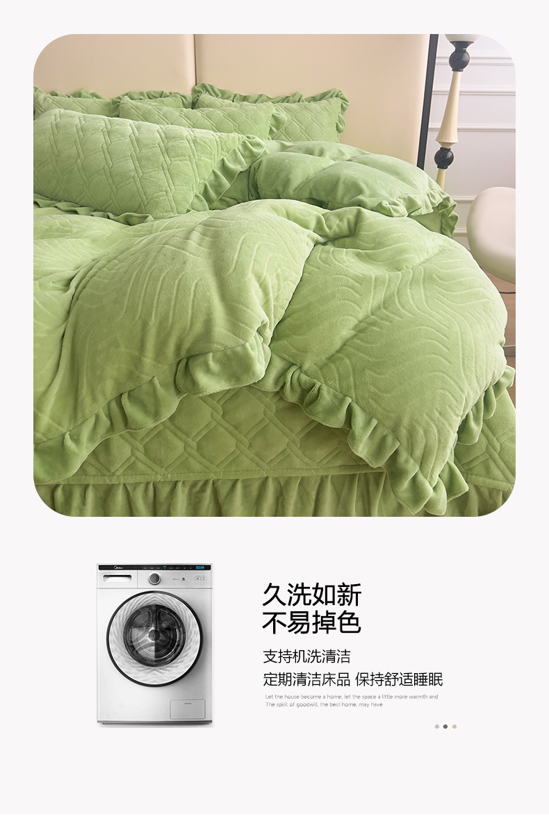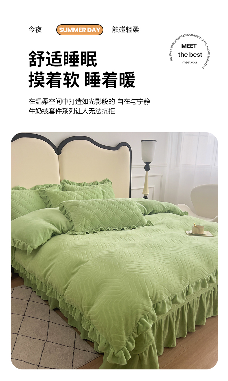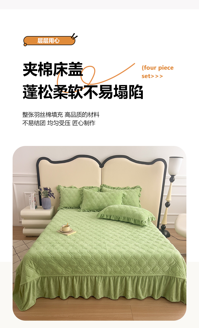 商品名称:十个点家纺 2024新款牛奶绒夹棉床盖四件套-唯美系列 唯美-果绿