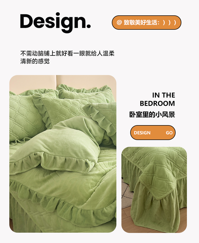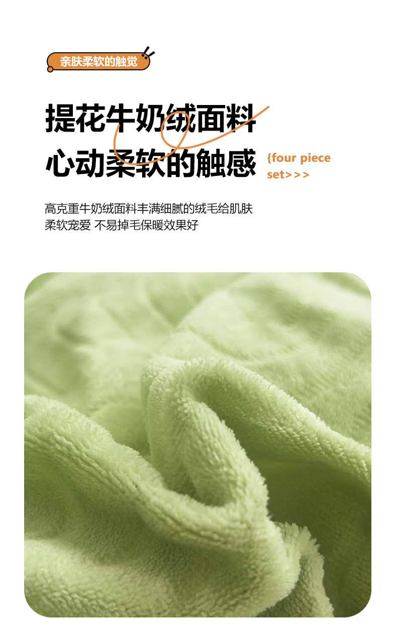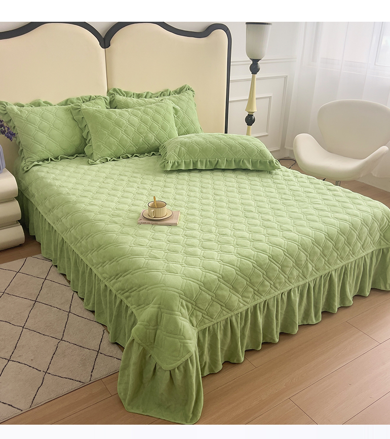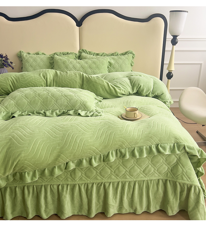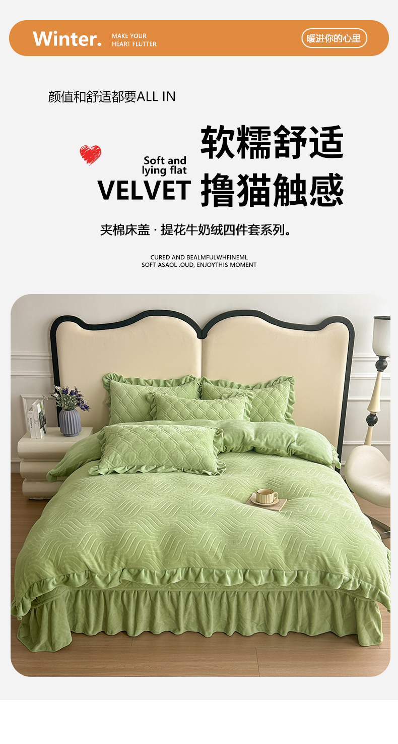 商品名称:十个点家纺 2024新款牛奶绒夹棉床盖四件套-唯美系列 唯美-果绿