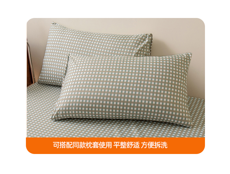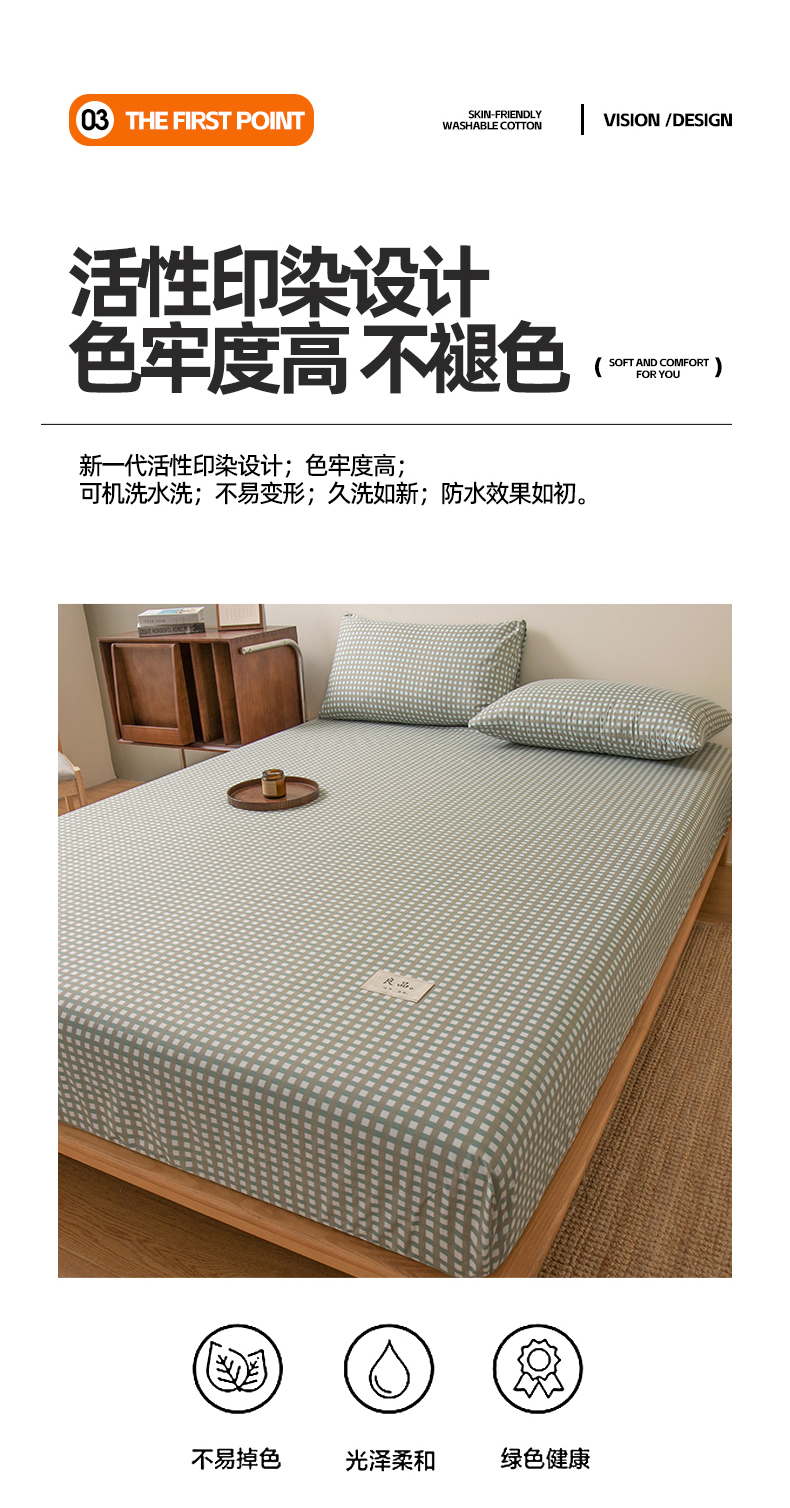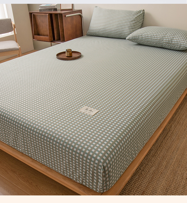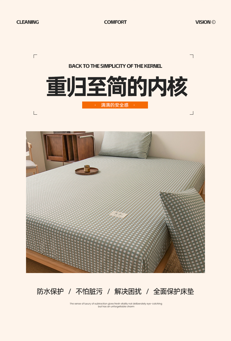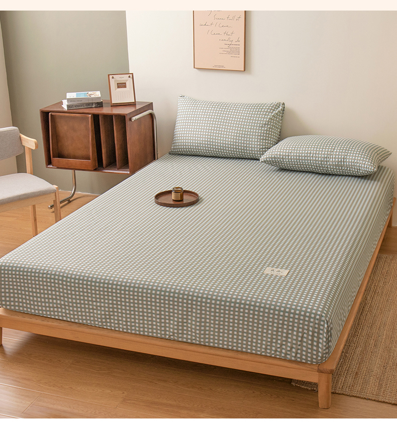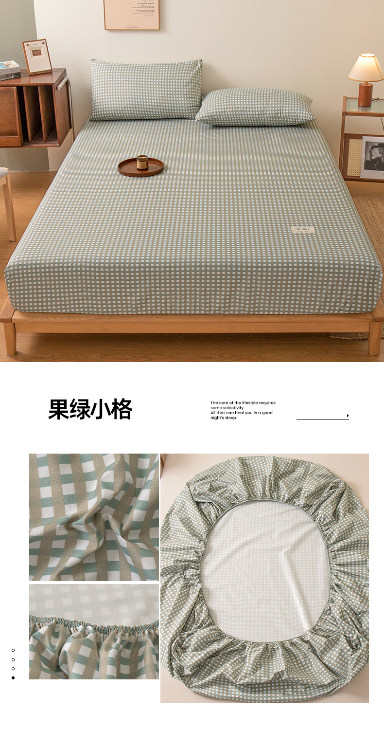 商品名称:暖季家纺 2025新款单层无印风防水床笠 防水-果绿小格