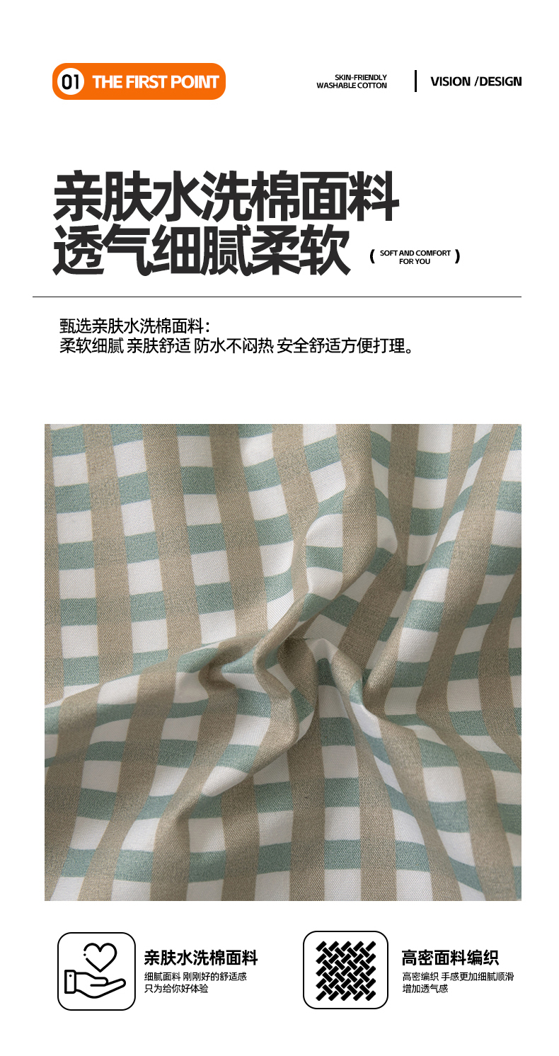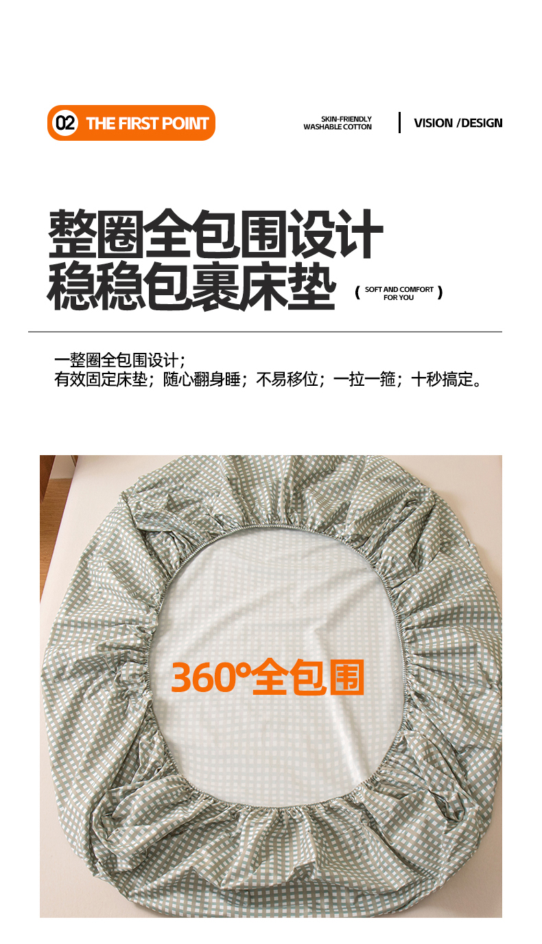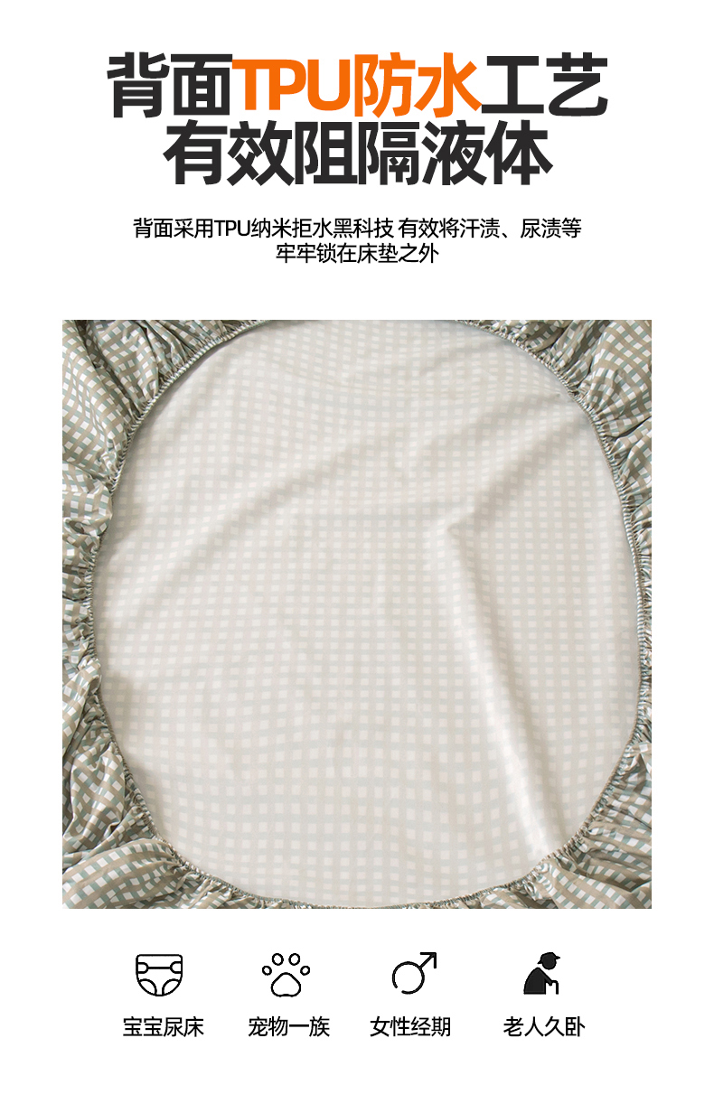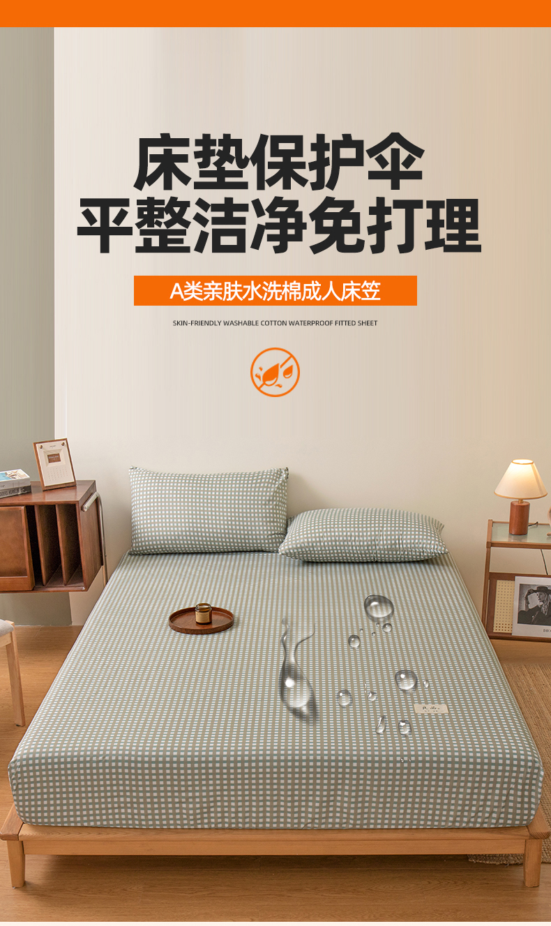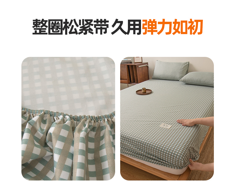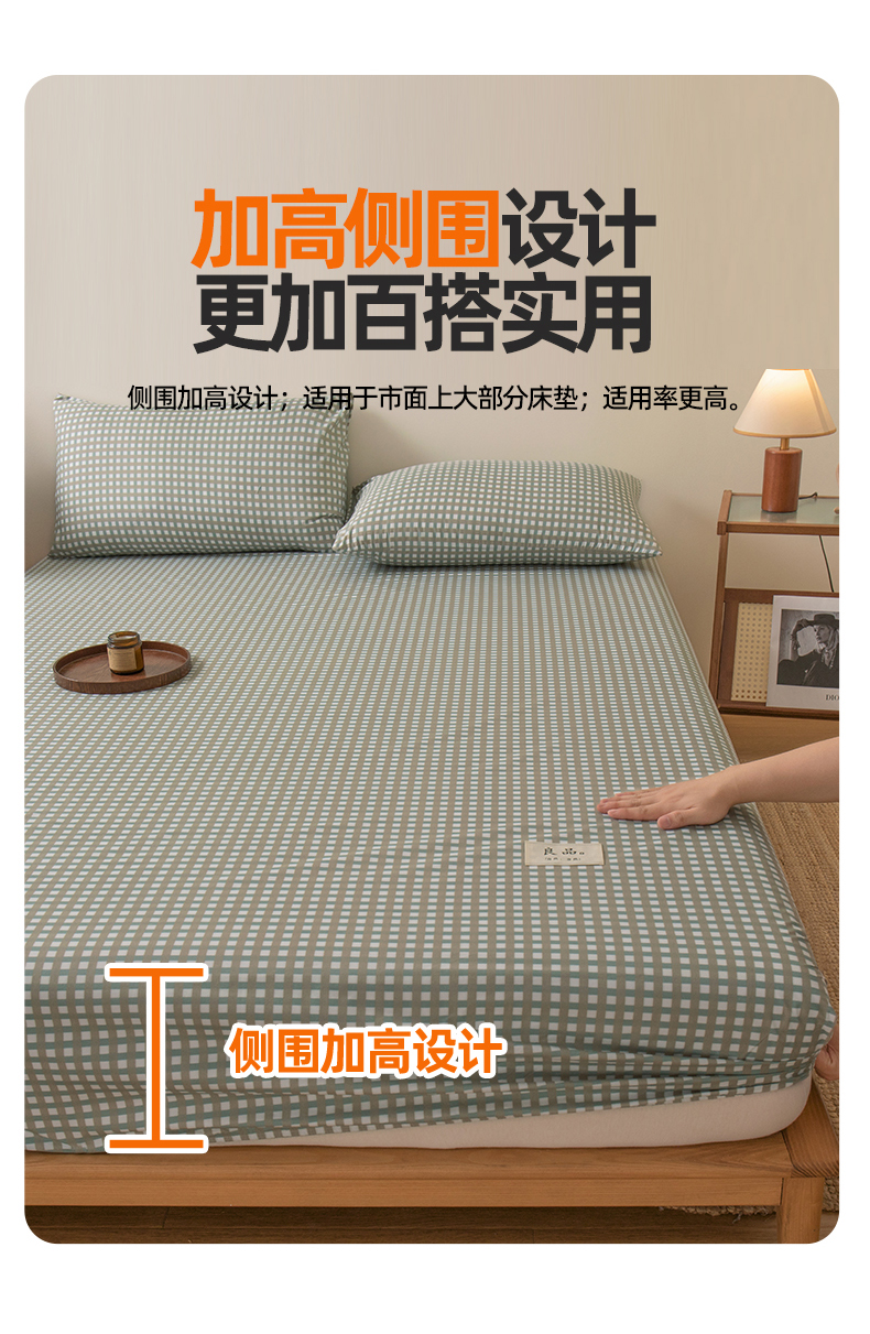 商品名称:暖季家纺 2025新款单层无印风防水床笠 防水-果绿小格