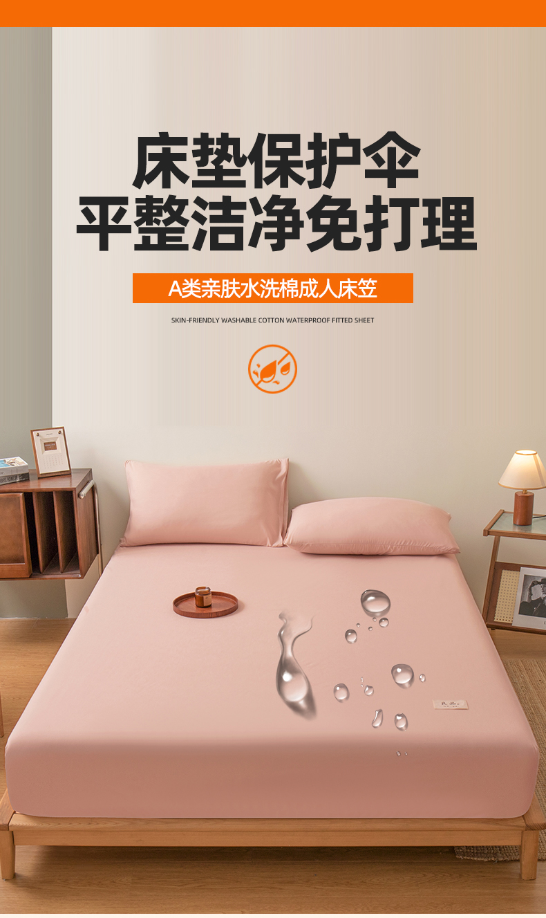 商品名称:暖季家纺 2025新款单层无印风防水床笠 防水-珊瑚粉