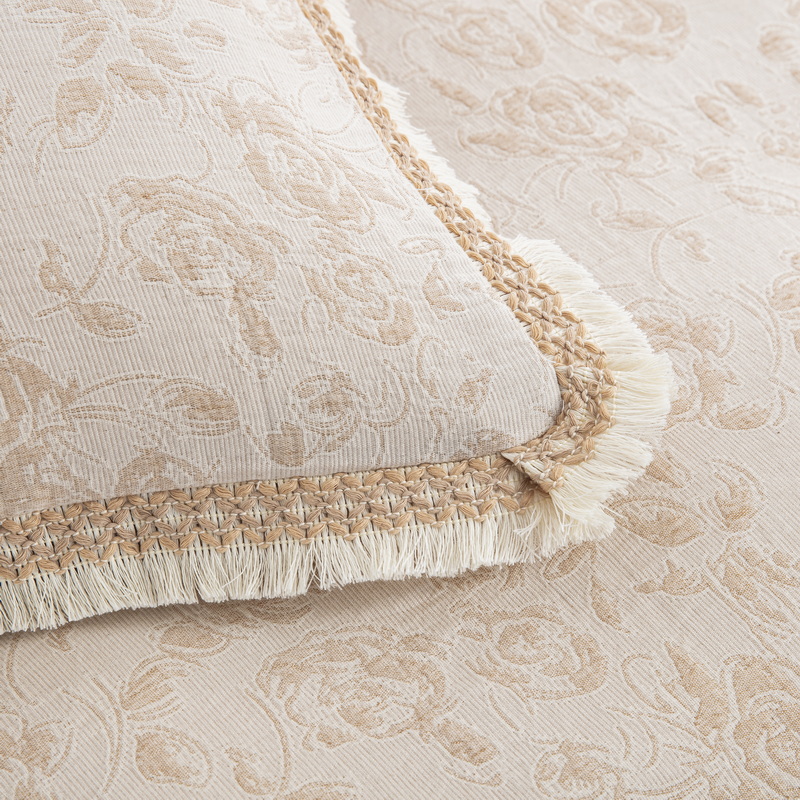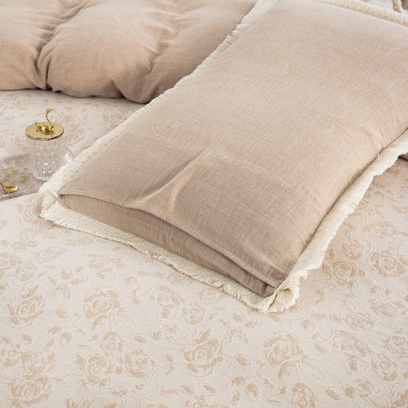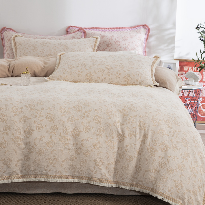 商品名称:鲁爱 2025新款全棉三层纱流苏款四件套 唯爱-浅咖