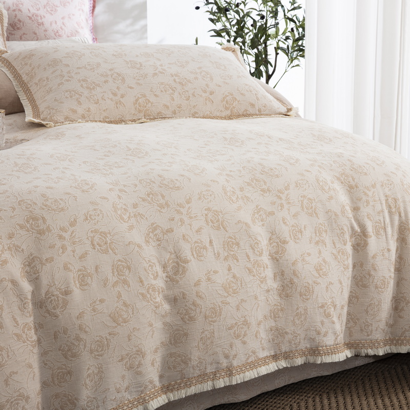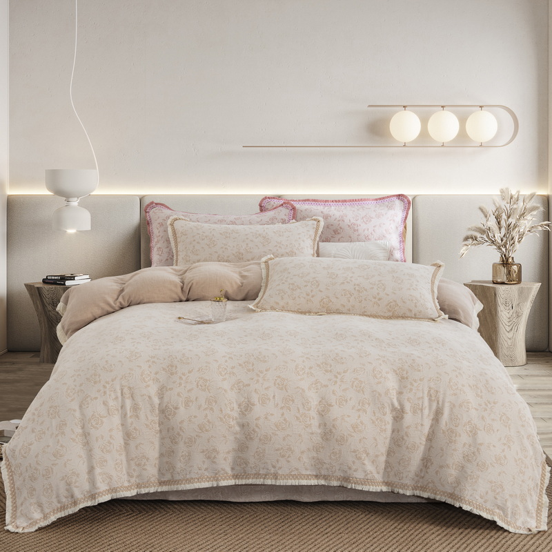 鲁爱 2025新款全棉三层纱流苏款四件套 唯爱-浅咖