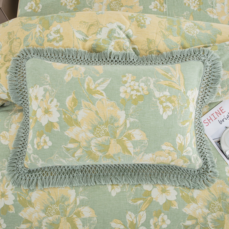 鲁爱 2025新款全棉双层纱流苏花边四件套 寻芳-绿