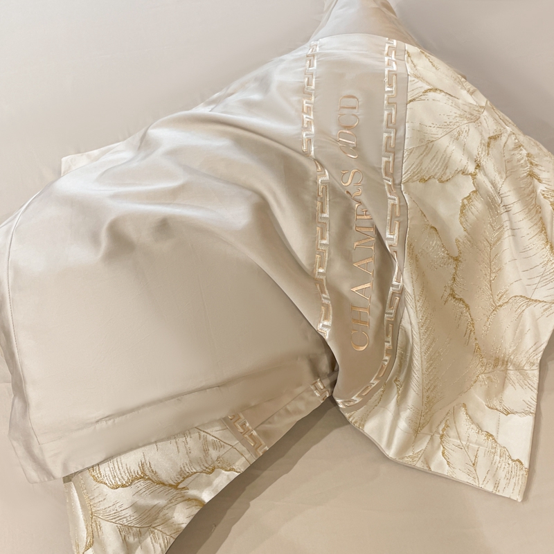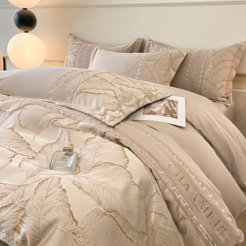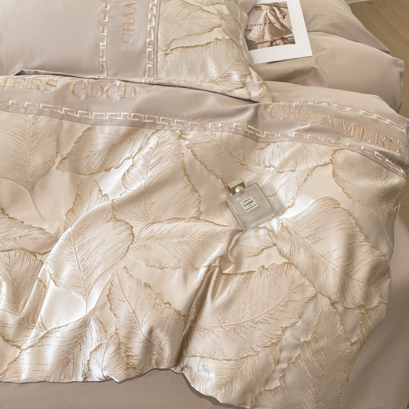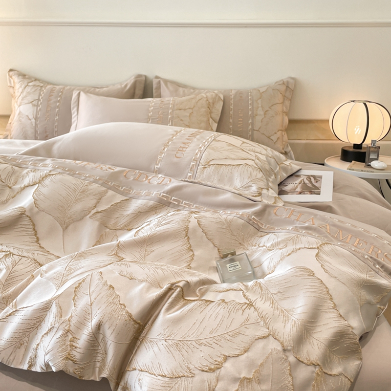 商品名称:2024新款拼接浮雕刺绣全棉纯棉加厚陶瓷生态磨毛四件套-茱莉叶 香槟金